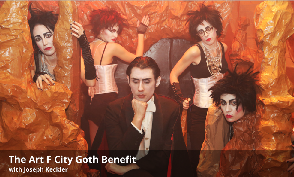 Art F City's Goth Benefit is Tuesday, April 18, 6 to 10 p.m., at Collapsable Hole (55 Bethune Street). Joseph Keckler will perform a set of "goth opera masterpieces" and Instagram-star Sean Fader will take your photo and give you a print. Advance tickets ($75 for artists/students/musicians) are HERE, but show up in full-goth garb and you'll get a discount.