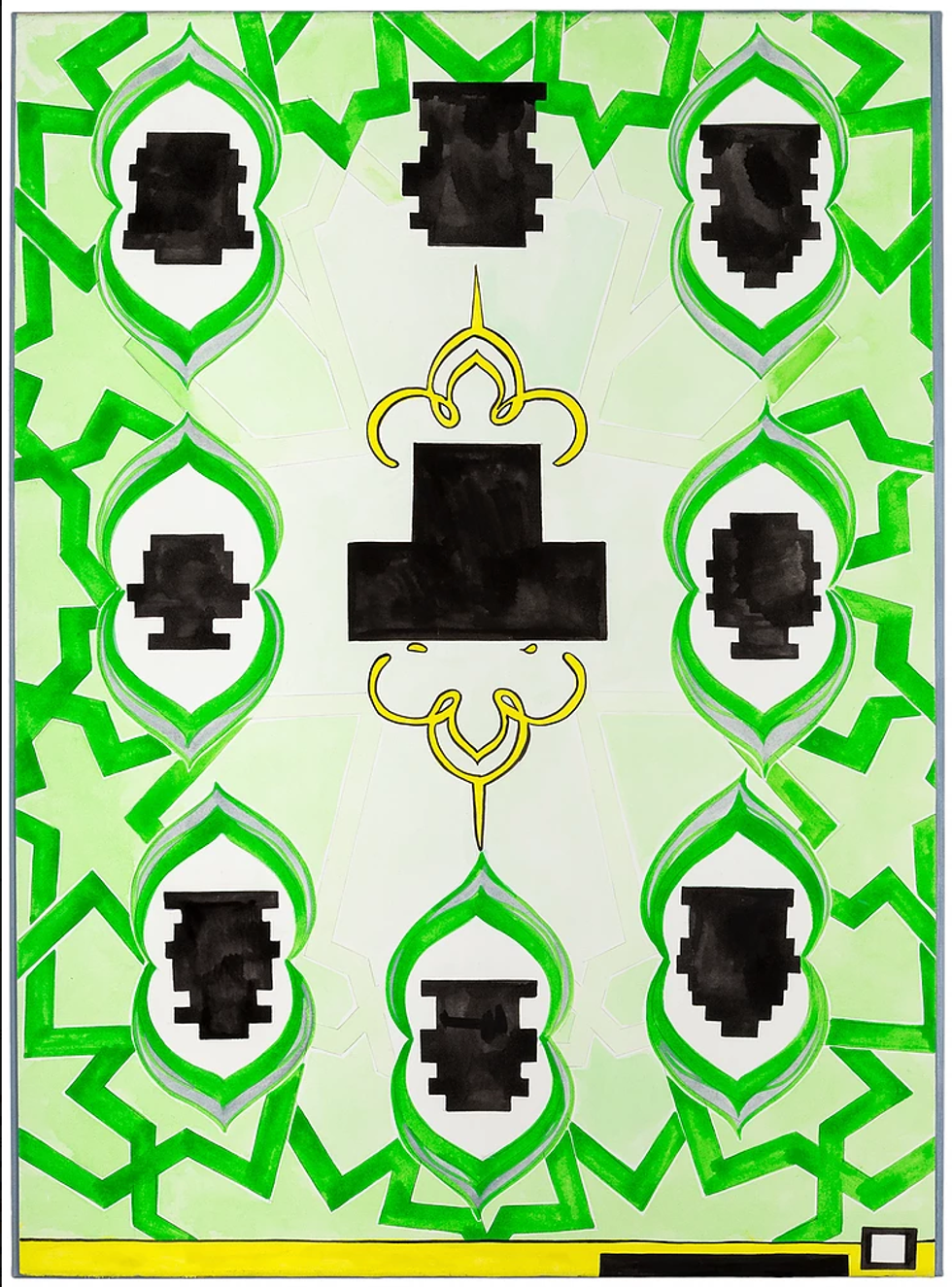 Fridman Gallery (287 Spring Street) opens their first solo exhibition, "INFOESQUE," by the British artist Navine G. Khan-Dossos on April 13, 6 to 9 p.m., The show includes a series of works on canvas that "explore the design strategies of Rumiyah magazine," plus thirty-six panel paintings that use issue 5 of the now-shuttered Dabiq magazine as source material. On the 13th, there's a conversation with the artist by James Bridle at 6 p.m.