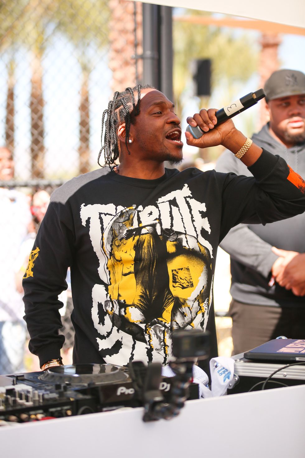 During Weekend One's welcome barbecue soiree, hosted by Chef Huang, guests enjoyed miniature pulled-pork sandwiches, grilled chicken, cole slaw and other classic barbecue staples with no shortage of party-starting tunes. Pusha T performed courtside and I got to chat with WNBA stars Liz Cambage and Candace Parker on how they survive festival season, their relationship to adidas, and who they'd pick to play Coachella if they had their way.