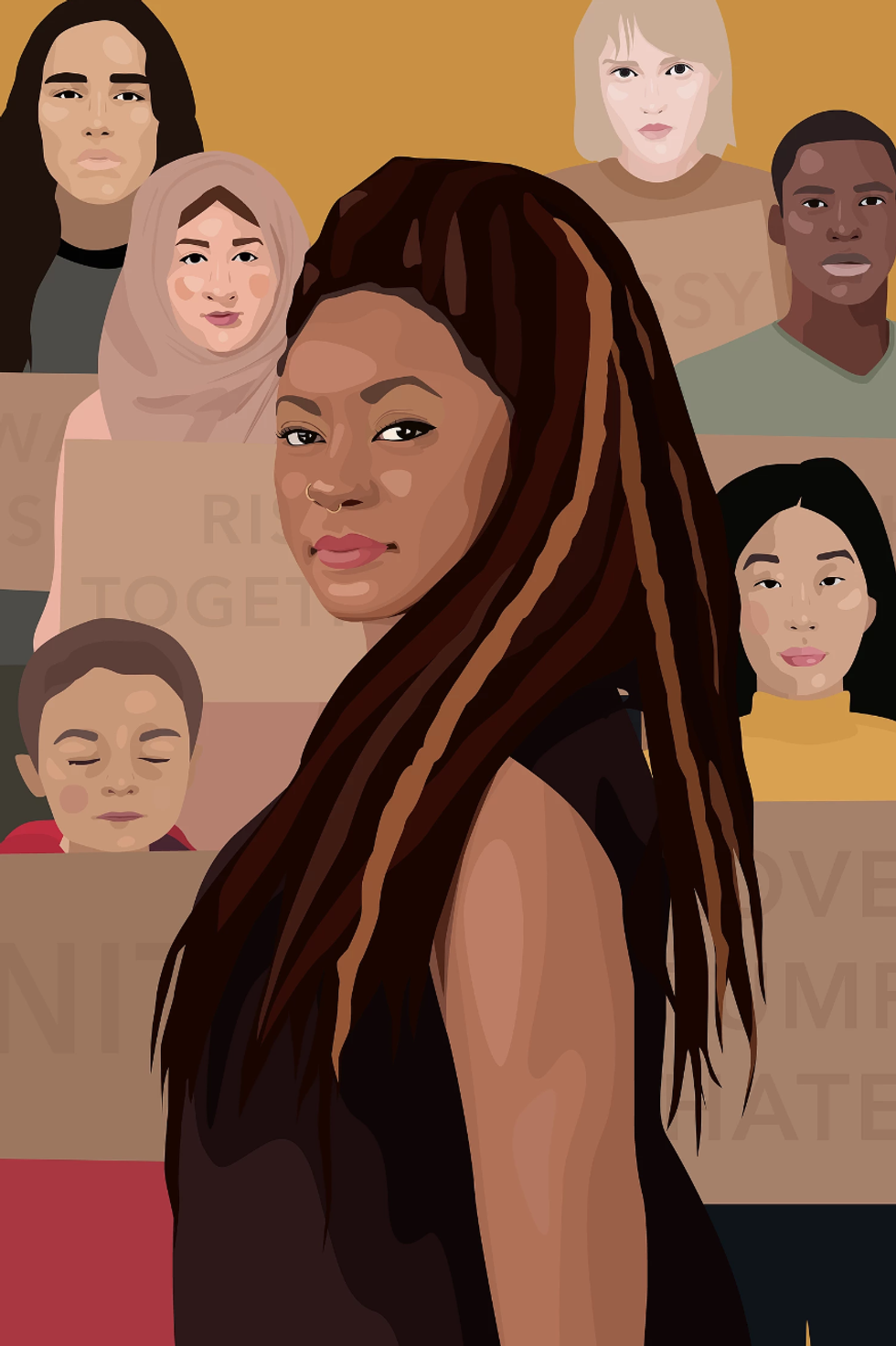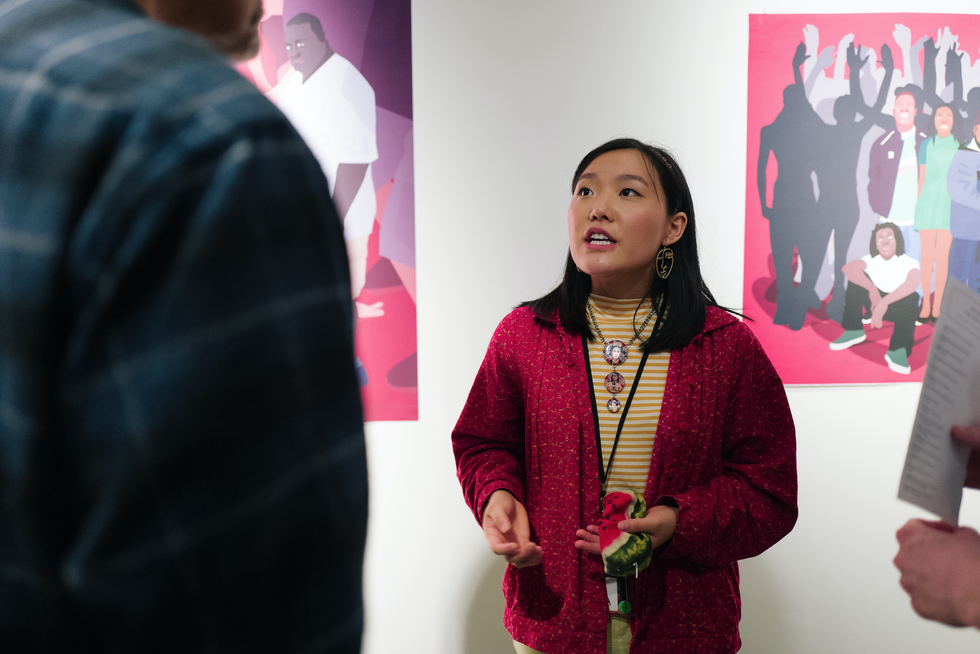 At the same time that she is passionate about her artwork, Okamoto is aware of her position as a non-Black woman of color representing police brutality that affects Black communities. She says, "My work with Black Lives Matter is [complicated] because I am Asian. I'm not Black. I'm creating work about racialized violence with families who are not my own and who don't have the same identity as me. The unifying factor is that we don't have a white experience. At my core, my work is about uplifting other people's voice, especially those in my community who are most marginalized."