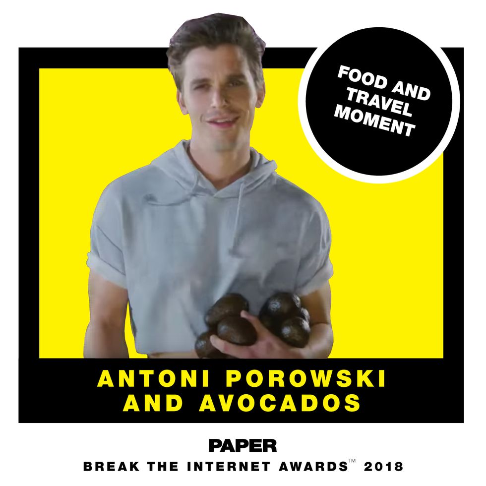 Queer Eye foodie Antoni Porowski quickly became a viral sensation this year for his consistent love of avocados on the Netflix series, which the 33-year-old culinary guru capitalized on in full. Following an onslaught of memes, he gave fans tips on choosing the best avocado (you literally just press down on the joint to test its texture), he revealed his favorite way to eat avocados (a Lebanese-style smoothie), and even danced in an avocado rainfall while cradling the fruit for Betty Who's theme song music video. Porowski's new West Village restaurant, The Village Den, aptly features avocado on its menu, from a breakfast bowl with avocado and poached eggs to his very own smoothie that mixes matcha with avocado. He really does love them! — Justin Moran