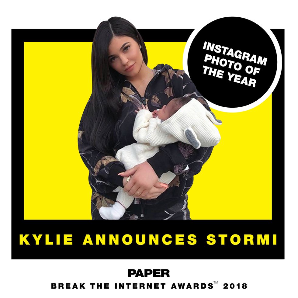 Continuing the business-savvy legacy of sister Kim Kardashian's penchant for creating sensational viral content, beauty mogul Kylie Jenner legitimately broke the Internet with the photo announcement of her first child, baby girl Stormi Webster. After months of silence and virtually no public appearances, rumors swirled about whether or not Kylie was pregnant in the first place and who the father was, while many within those threads speculated on Kylie's readiness for motherhood. So when Kylie posted a heartwarming photo of baby Stormi grabbing her manicured hand, along with a written statement addressing her desire to keep her pregnancy private and a 10-minute video documenting her preparation for birth with father Travis Scott, she effectively reclaimed whatever narrative the Internet was spinning for her and her family. In the digital age, few people sell their baby photos to the press anymore, so Kylie's announcement allowed the world to really witness her joy through her and Stormi's eyes. — Michael Love Michael