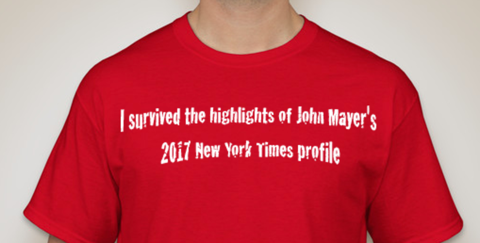 The New York Times just published a profile of John Mayer, Starbucks adult contemporary musician and ex-boyfriend to the stars, and whew boy... it is nightmare fuel. Just what makes this profile such a punishing read? Maybe it's his signature tone of narcissism-as-self-awareness, maybe it's his eagerness to spill the tea on all of his exes, maybe it's his mansplaining of cultural appropriation, or maybe it's the fact that he honestly doesn't seem to realize that we permanently canceled our subscription to his musings after he used the n-word and said he had "a Benetton heart and a David Duke cock" back in 2010. Reading this profile makes you feel like you're sitting in a Reald 3D Imax presentation of your absolute worst Tinder date, so the question is... can you survive its highlights? Can you make it all the way to the end?