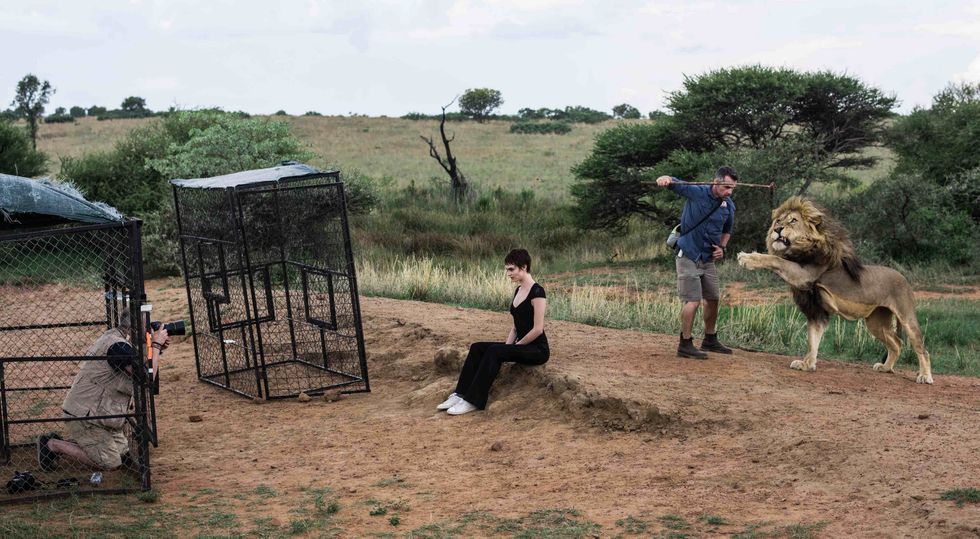 So beautiful. The way they walk... [This campaign] is the situation I've been in my whole life. If you get scared, the lion senses i, and I love that so much. That first day I had to be in a cage while the lion checked me out. I would be in a cage and the lion would go around sniffing me, and I knew what it felt like to be in a zoo.