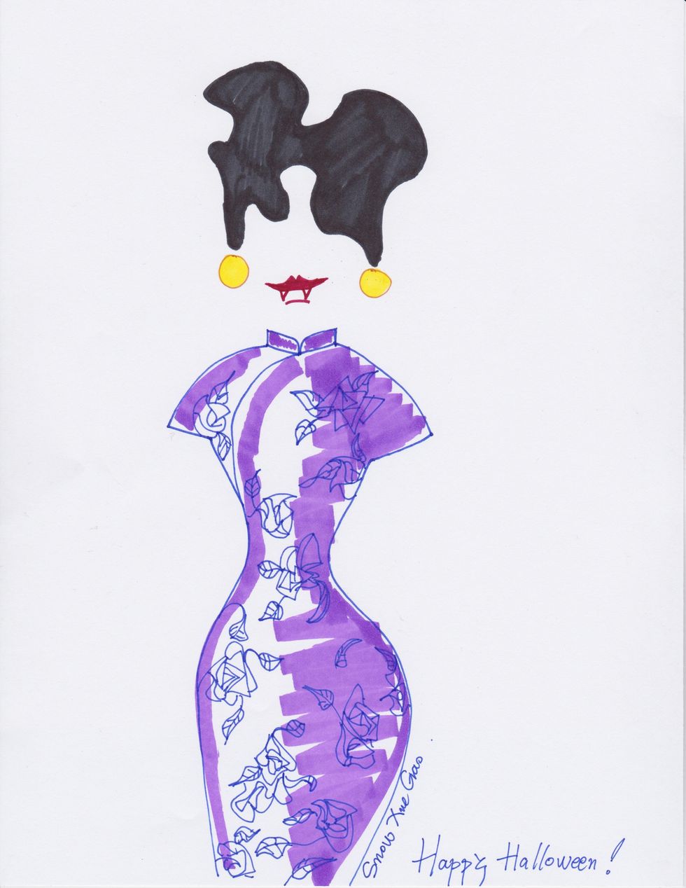 Hong Kong in the 1960s is Snow Xue Gao's happy place. The period's qipao dresses and costume jewelry appear in the Beijing-native's namesake collection in a fresh way each season. Paying homage Wong Kar-wai's film In The Mood For Love (2000) — a romantic tale about a journalist and a secretary who fall in love after their respective spouses have an affair together — Gao gives the protagonist Su Li-zhen vampire fangs that would send her cheating husband running for the hills.