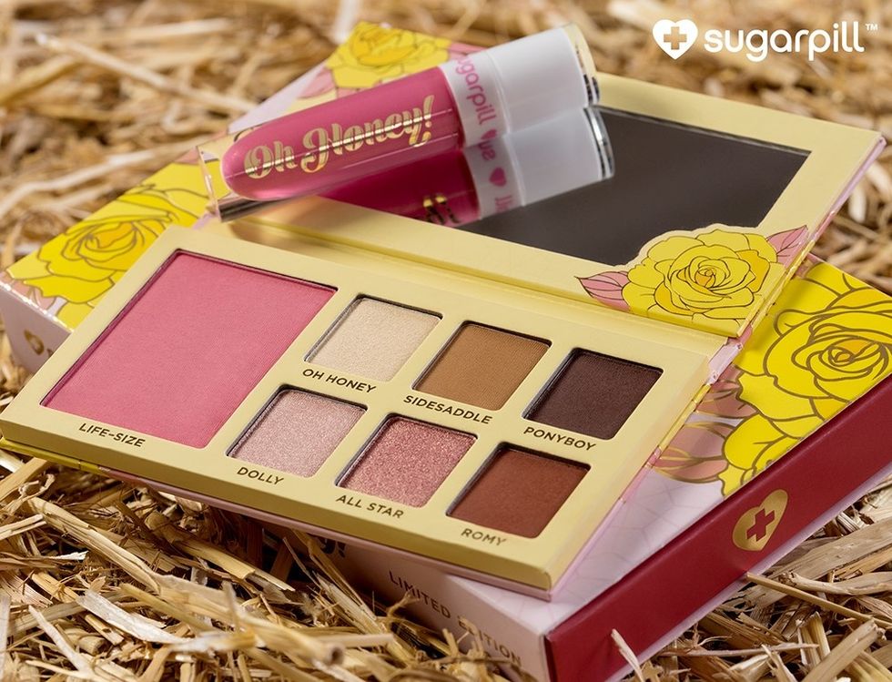 The collection launches September 5 on sugarpill.com and retails for $52. Shades are not available for individual sale, no shade. Catch some promotional shots below of the makeup line and Mattel herself, all dolled up and lying in bales of hay, naturally. Oh honey, indeed!