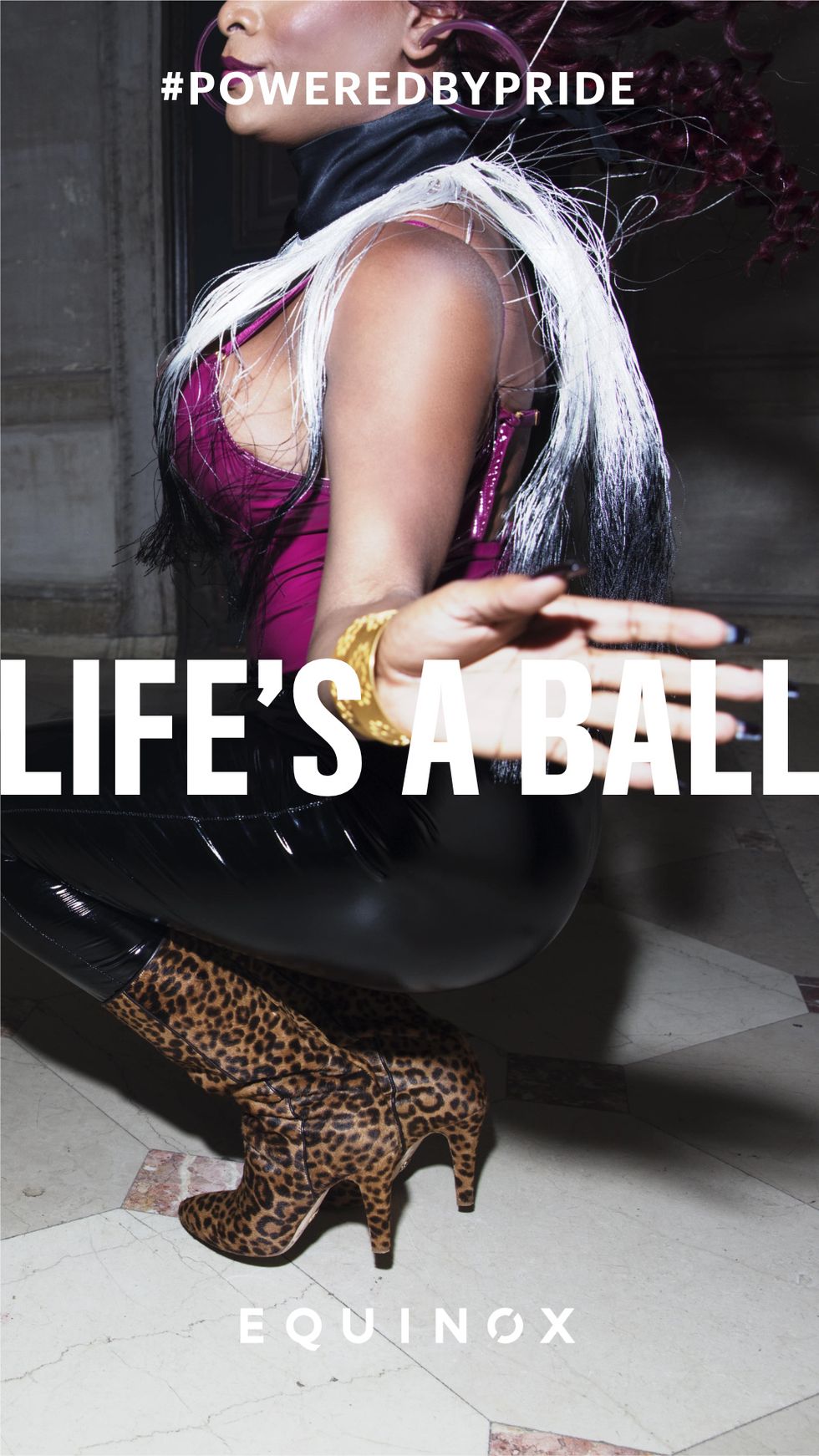 To commemorate this launch, Equinox recruited a handful of the New York ballroom scene's most iconic figures to lead a vibrant video and image campaign, using the tagline, "Life's a Ball." The video is definitely something of a family affair, showcasing individual elements of vogue performance, from catwalk to floor. Performing in solo shots and surrounded by family are a range "Legends" and "Icons." Legends featured are Veronica Miyake Mugler, Chyna Prodigy, Asia Balenciaga, Tamiyah Miyake Mugler; Icons are Sinia Alaia, Leiomy Maldonado, and "Up-and-Coming Legendary," Tati Finesse.