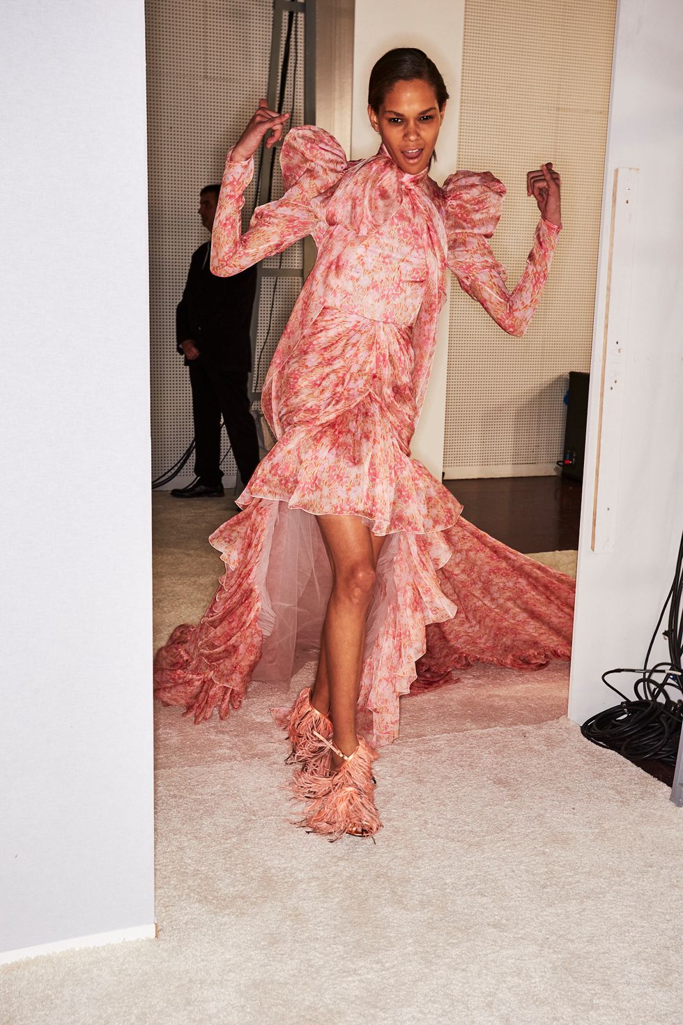 Designer Giambattista Valli told reviewers this season that his fall 2019 collection was about "living without restrictions and free from conventions." Floral gowns, marabou strappy sandals, little leopard print dresses and sleeves that were imbued with Victorian construction (think: poufs and flounces) were the mainstays of the feminine collection. Along with that, coquettish images from Guy Bourdin influenced the aesthetic. Here's everything else you need to know about the show.