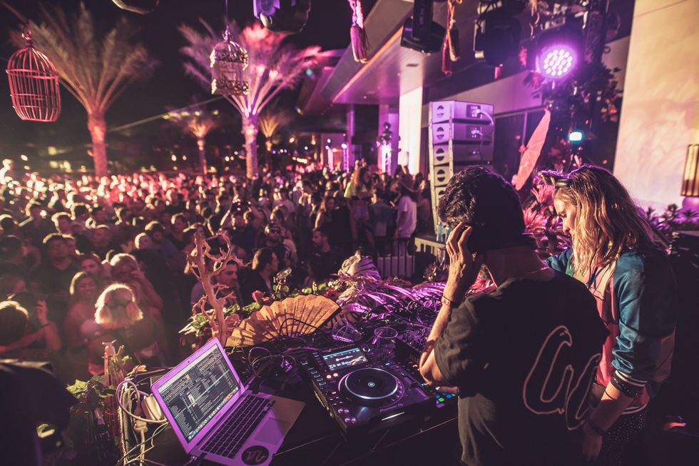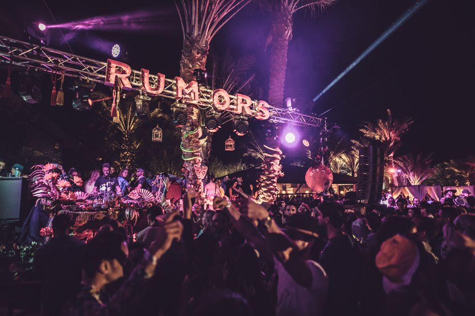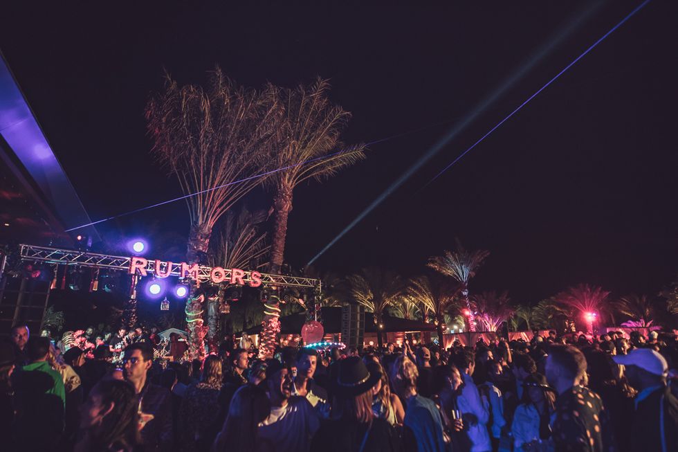 Before Ariana Grande even belted her last note Sunday night of Coachella Weekend One, there was already a winding line of people trying to sneak past the bouncer outside what had been billed as "the most exclusive" festival after party. The brainchild of jet-setting DJ extraordinaire Guy Gerber, his re-occurring international RUMORS night touched down at the multi-million dollar Zenyara estate for a night of lo-fi house and hypnotic techno on the shore of a football field-sized pool.