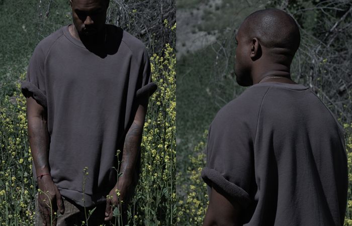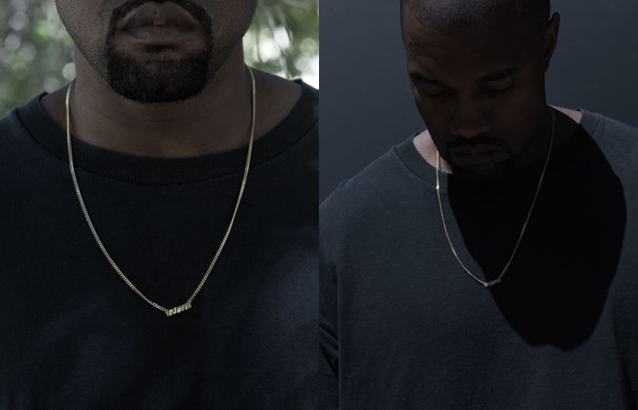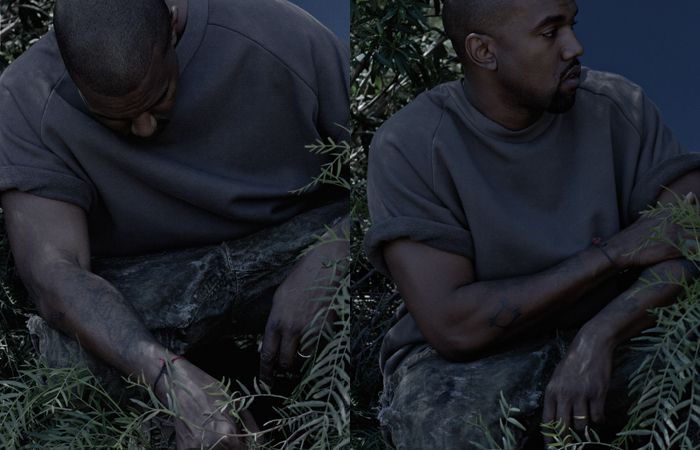 Kanye wears a Duke's vintage t-shirt, Kanye West x Adidas Originals shirt and vintage military pants. Nori necklace is his own.