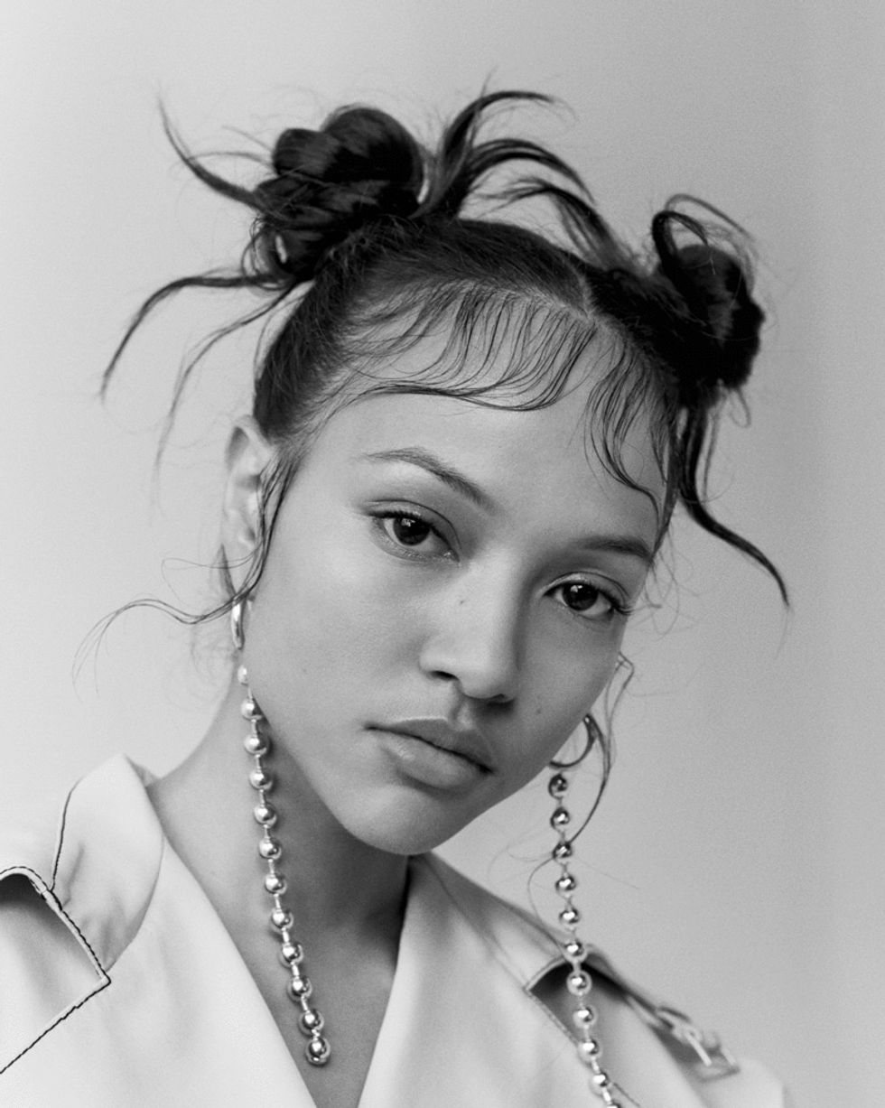 Jacket: Adeam, Blouse: Lyell, Earrings: Alison Lou