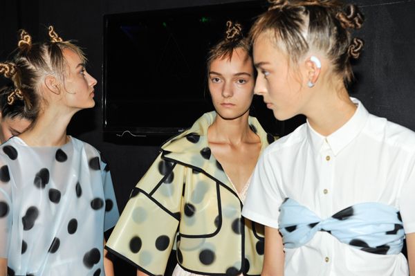 Now the latest hair appropriation trend appears to be bantu knots or "hair nubbins," as Buzzfeed regrettably called them when Rihanna owned the look at the iHeartRadio Music Awards back in May. And last night, in fashionably late form, bantu knots hit the runway. Marc Jacobs chose the knotted hairstyle to complement his parade of retro pastels at the Marc by Marc Jacobs Spring 2015 show.Â