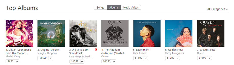 As of today, the Glitter soundtrack is the number one album in the US store. A mere 17 years after its unfortunate September 11, 2001 release.