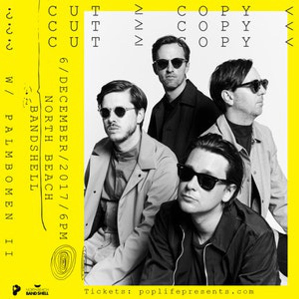 Aussie synth-pop band Cut Copy are playing at the North Beach Bandshell (7275 Collins Avenue, Miami Beach) on Wednesday, December 6, doors at 6 p.m. Tickets are HERE.