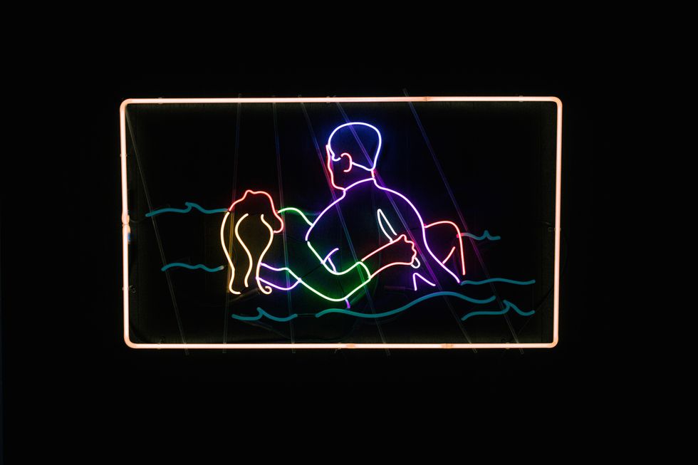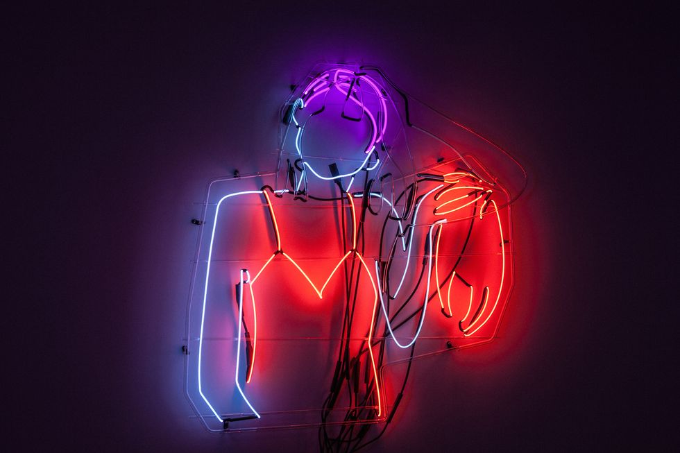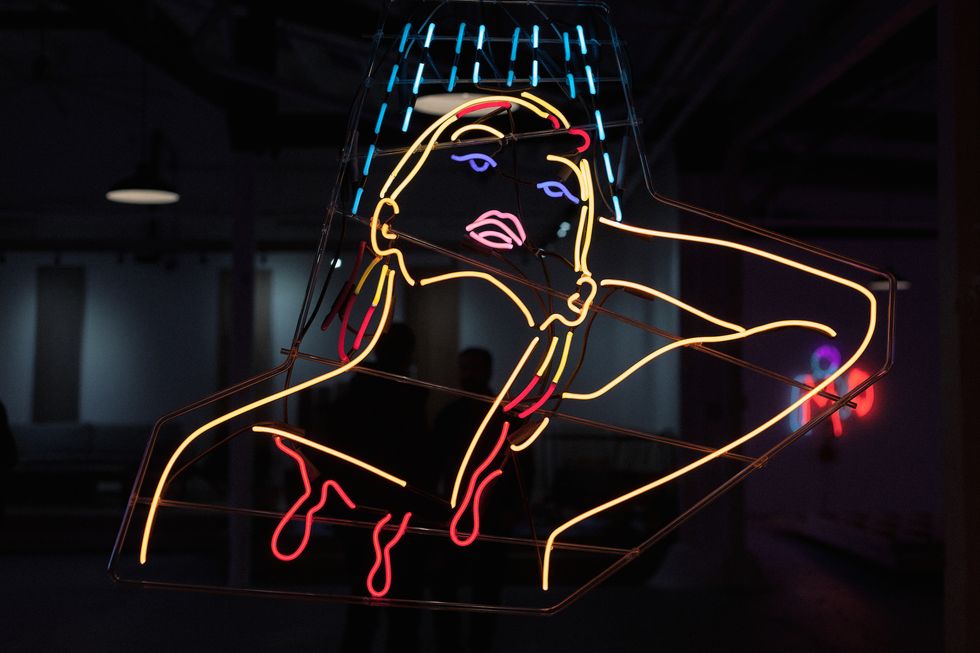 As the years went on working in the neon shop, I now am at a point where I have a hand in it so much, a lot of it is just me doing the majority of it myself. It's really rare for an artist to bend their own neon. There are a couple people in the city I know who do it, but most people who do work in neon have to get it completely fabricated. You spend a week in the neon shop, I think you'd see why it was so expensive. It's just the labor that goes into it. It's just an insane endeavor. I was getting a piece ready for this show and it broke a day before install and I just had to scrap it. There was no saving it in time. That's the heartache of it. You have to really learn to get over it and let go.
