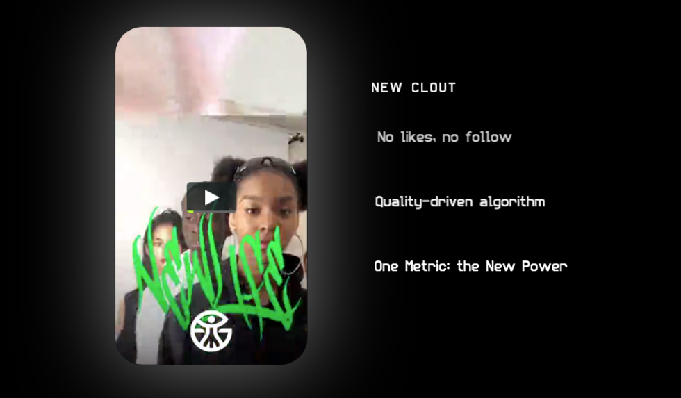 "Our algorithm establishes clout, which is not the amount of people, because we don't follow industrial logic. We value quality or skill," Newman says, before explaining the inner workings of their AQ (aka Aesthetics Quotient) measure. "It's a form that intelligence that anyone can have, from anywhere in the world."