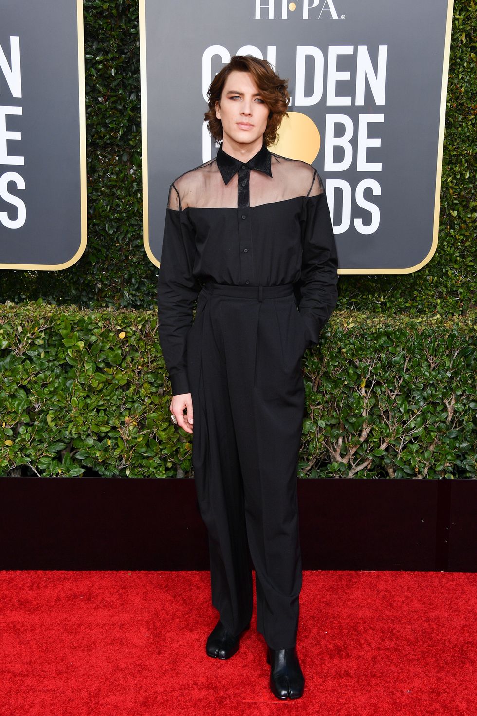 The Devil wears Margiela — at least according to actor Cody Fern, who transformed into an all-black, romantic goth for the 2019 Golden Globes red carpet. Stylist Nicola Formichetti, famous for his provocative work with Lady Gaga, is responsible for collaborating with Fern on the head-to-toe Maison Margiela outfit, complete with leather Tabi boots that shook the Internet to its core.