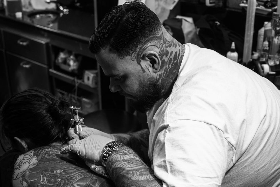 Of course, during tattoo prohibition, inking was absolutely present, but the legitimization of the trade allowed those in hiding in the dark to step into the light. Enter Fun City: the city's first-ever storefront tattoo parlor. Opened illegally in 1976 by the mythical Jonathan Shaw (known for tattooing the likes of Kate Moss, Johnny Depp and Iggy Pop), the shop was passed on to a former shop boy and now co-owner Steve "Big Steve" Pedone — who walked in the parlor at age 18 and hasn't left since. Continuing Shaw's legacy, Pedone continues to attract celebrity clientele aplenty. From Demi Lovato to Miley Cyrus to Young Thug, there are few tattoo-enthusiasts — New York City-natives — who are unaware of the Queens-born tattooist, or haven't been touched by his needle.