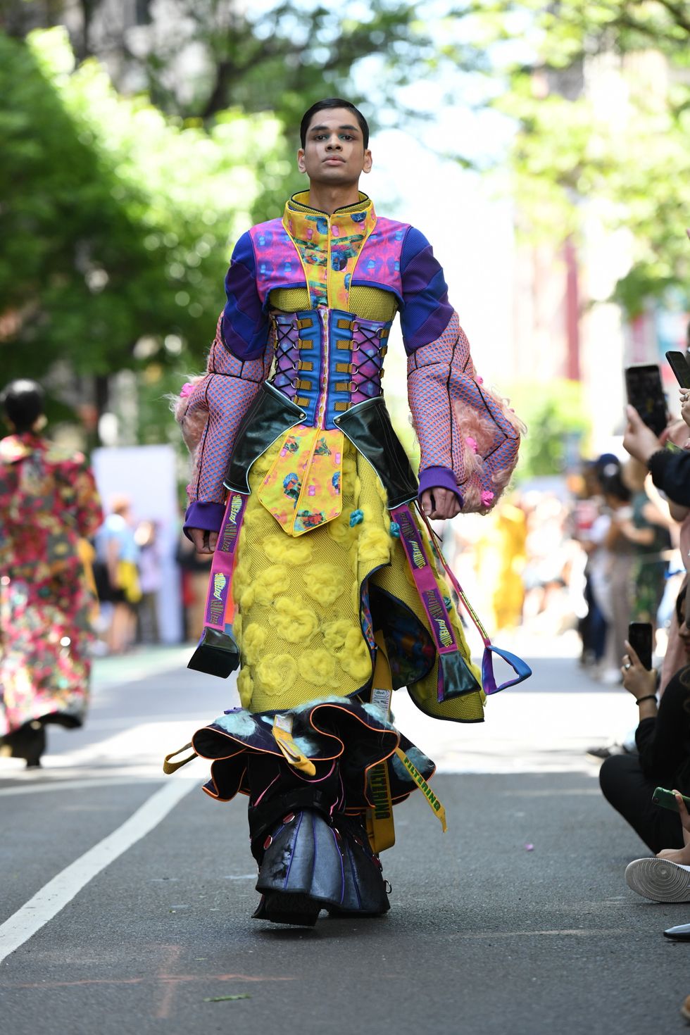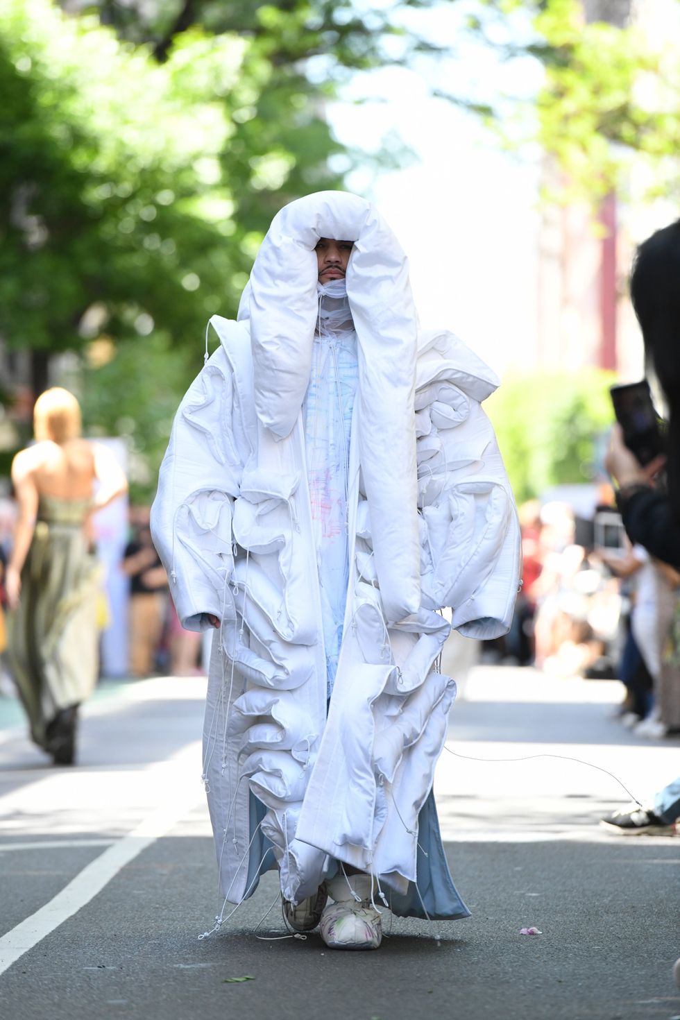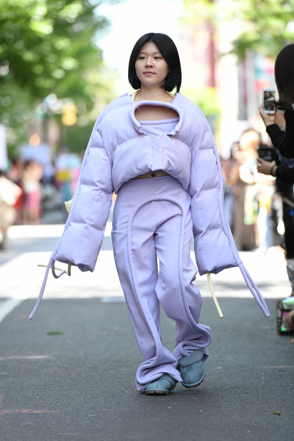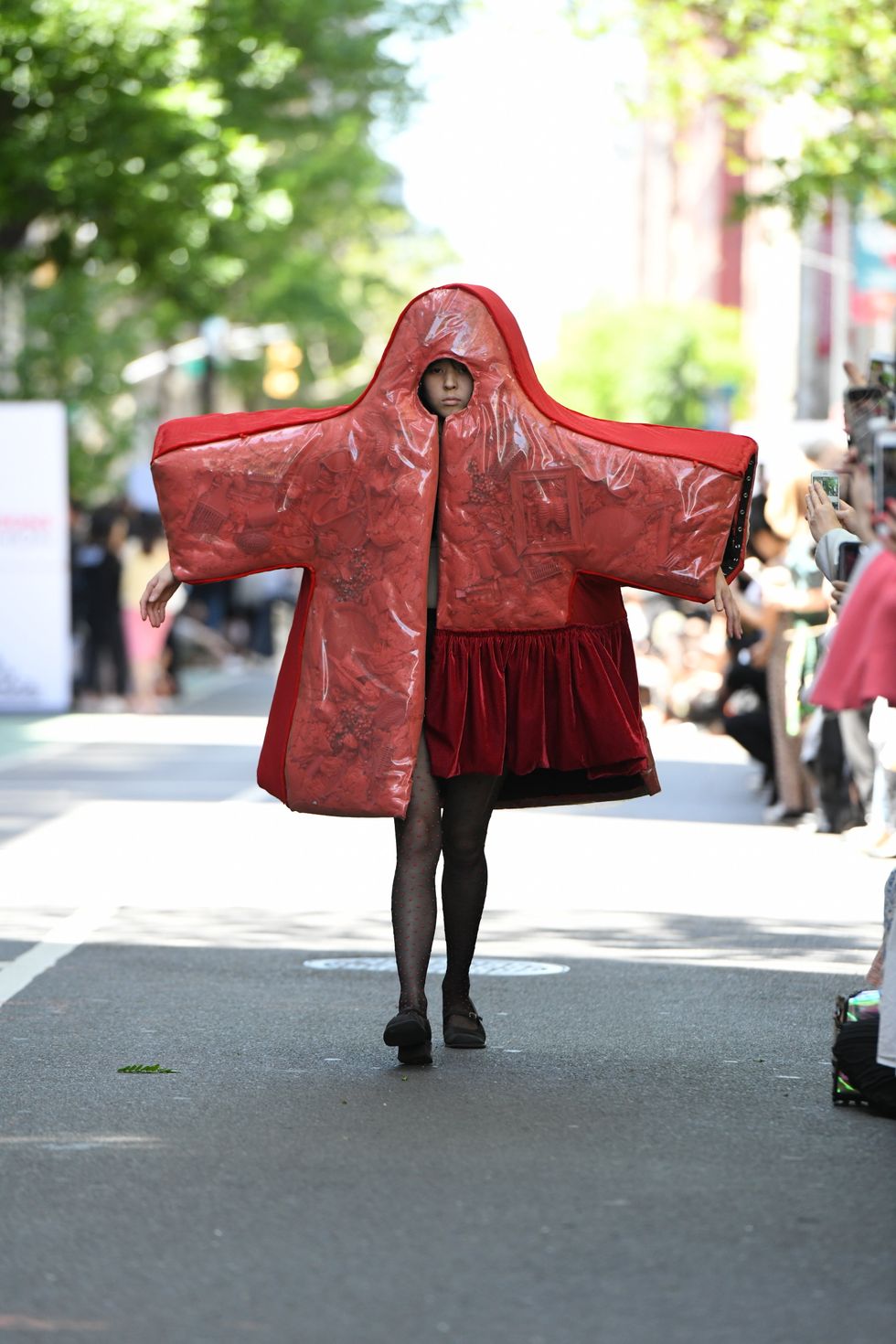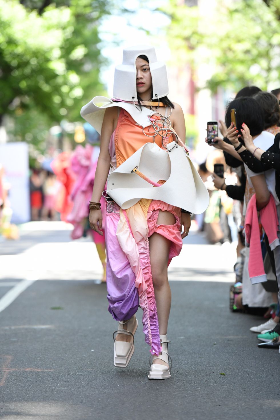 Student fashion shows are the best. There are no rules, no money to be made, no A-list front row snobbery — just an explosion of wild, unaffected ideas and a clear vision of where fashion's headed next. This year, Parsons School of Design hosted its BFA grad show outside on the streets of New York (the entire stretch of 13th, between 5th and 6th Avenue), and unleashed more than 250 student designer work onto the city.