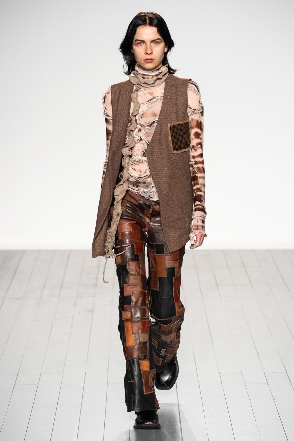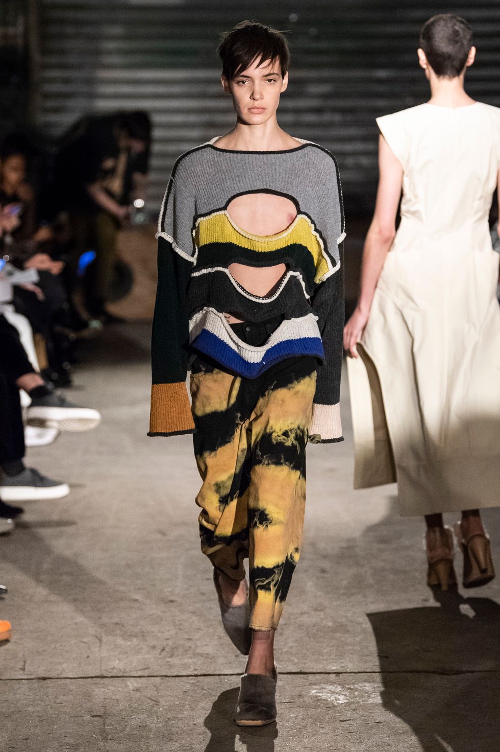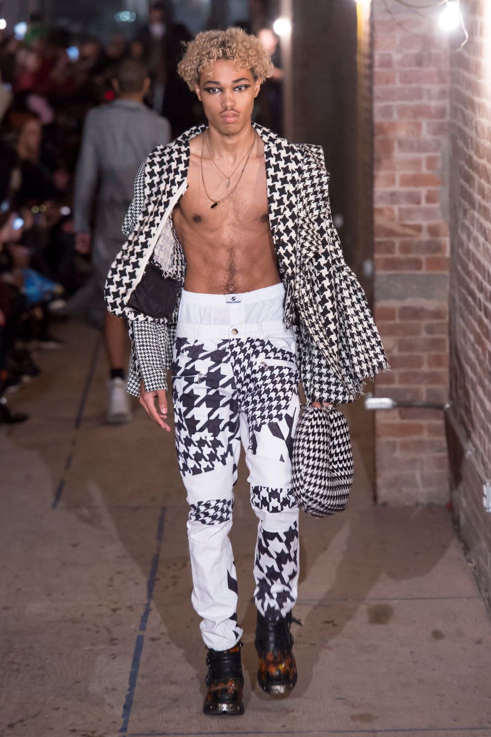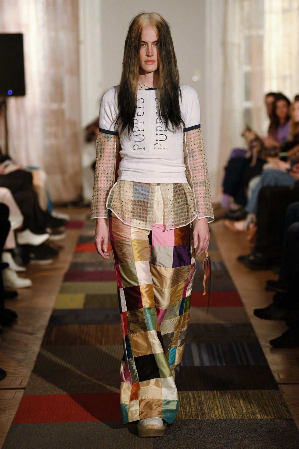 Patchwork has taken on a life of its own, showing up everywhere from downtown DIY venues to the most polished of catwalks. Artist and newly minted designer Carly Mark opened the debut show for her line, Puppets and Puppets, with model Jane Moseley in sheeny patchwork pants, a matching jacket mixed in a separate look on Lili Sumner. Gypsy Sport's Rio Uribe showed houndstooth patchwork pants, and Eckhaus Latta revels in the style. A huge portion of the Asai collection was patchwork, and Ashley Williams showed it on fleeces and jackets. And Alessandro Michele at Gucci always loves a patchwork moment.