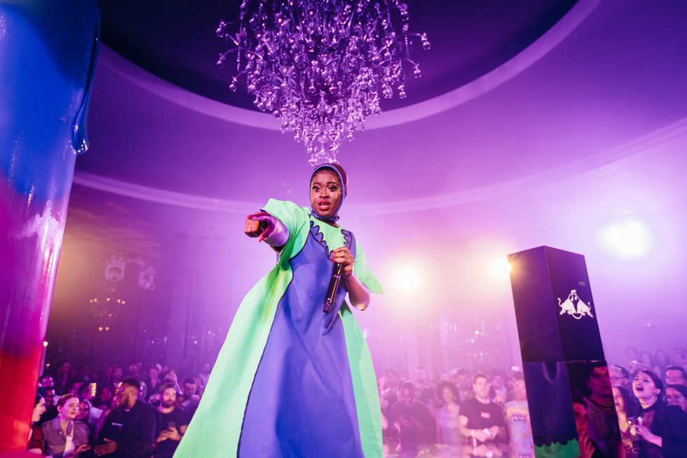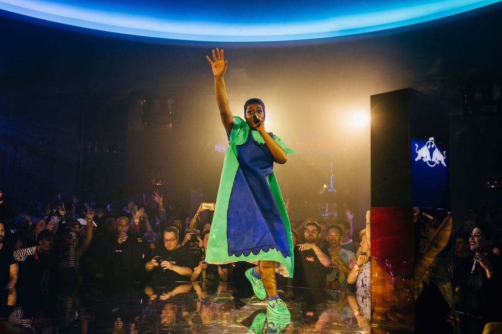Tierra Whack turned Rockefeller Center's Rainbow Room into Whack World for a set that was a bit more intimate than other Red Bull presentations. Performing on a round stage that gave her equal view to every fan in the room, she sang the one-minute tunes that made her famous, plus her newer songs, "Only Child" and "Wasteland," to name a few. The cute, surreal monsters from her Coachella set (remember Foster's Home For Imaginary Friends?) were positioned near the stage, the beats spun by DJ Osho were bone-rattling, and Whack's on-stage charisma was undeniable. Not to mention, the entire, well-organized show was probably no more than 45 minutes, which in my mind, is a game-changer, considering how many artists start hours later than expected then give you two-and-a-half hours plus 78 encores because one person asked. This is a show I would've loved an encore for.