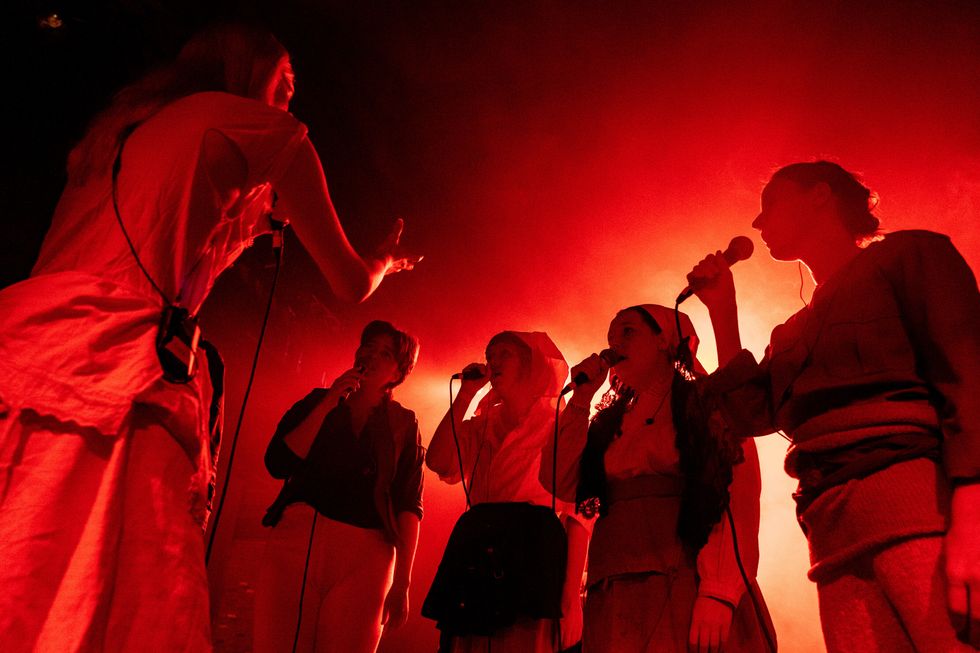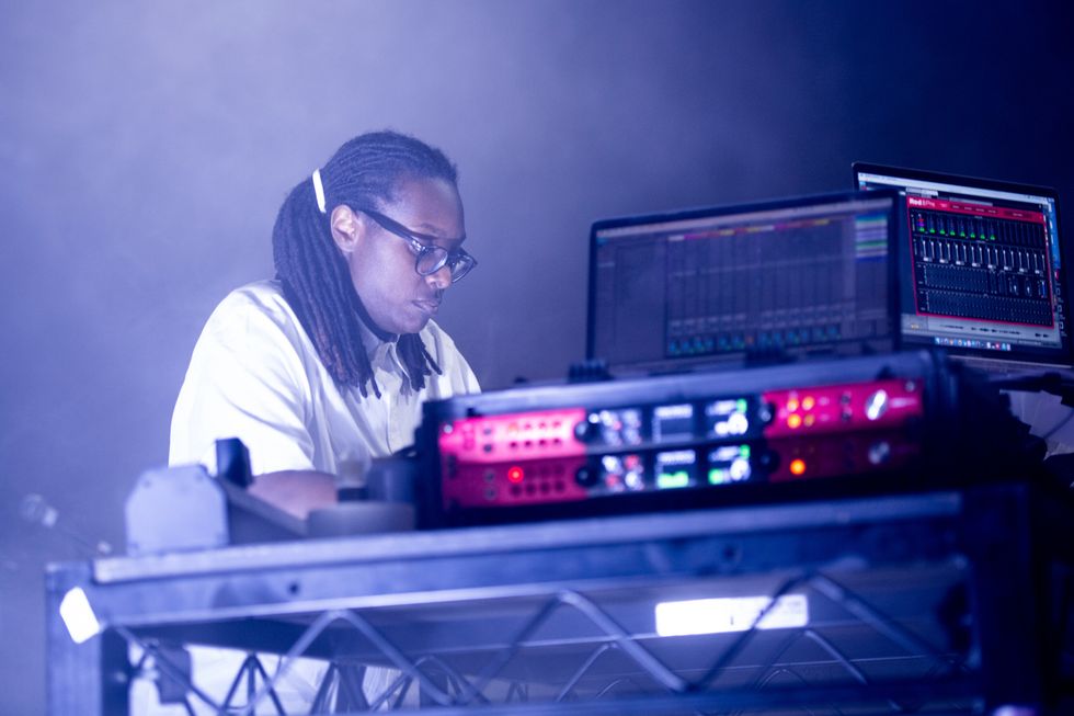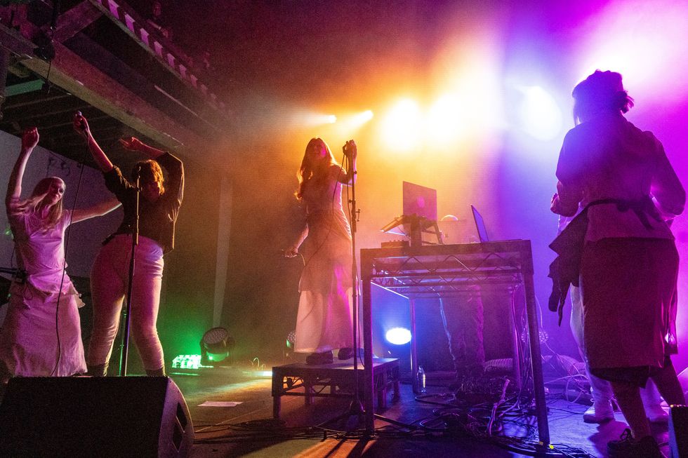 Berlin-based electronic musician Holly Herndon is making headlines for challenging perceptions of futuristic AI technology through her work. At this year's festival, she performed songs from her newest, genre-defying album PROTO, which arrived earlier this month with co-production from Jlin, who performed alongside Herndon. For Red Bull, Herndon created a multi-sensory show at non-profit arts space Pioneer Works in Red Hook, Brooklyn. It incorporated an ensemble of eight backing vocalists, "machine learning specialists," dancers, and visual art. The show was also a live culmination of Herndon's ongoing tech experiment, on which the PROTO project is based, exploring cycles of life, and the future through a community-raised and programmed "AI baby." Thinking back, it's a show that feels as academic as it is performance-based — a visceral reference point to reflect on once we've more fully embraced the possibilities of AI.