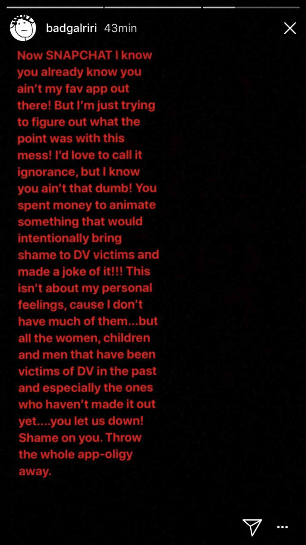 Related | Rihanna Slams Snapchat for Ad Making Light of Domestic Violence