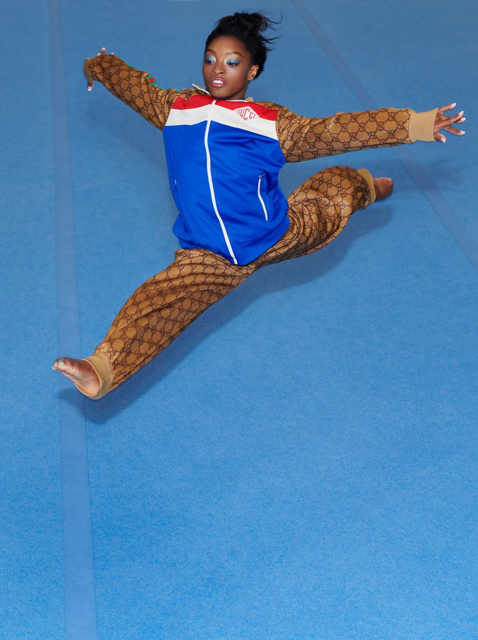 "I have a ways to go on all of my routines, but then again that will come with time," the ever-optimistic Biles says. "I just try to stay calm, stay in the zone, listen to some music, and think of it one day at a time rather than it as a whole." That means listening to Top 40 hits and, naturally as a Gen Zer, Cardi B. "I really like her because she's funny when she does interviews," says Biles. "She seems like a real person."