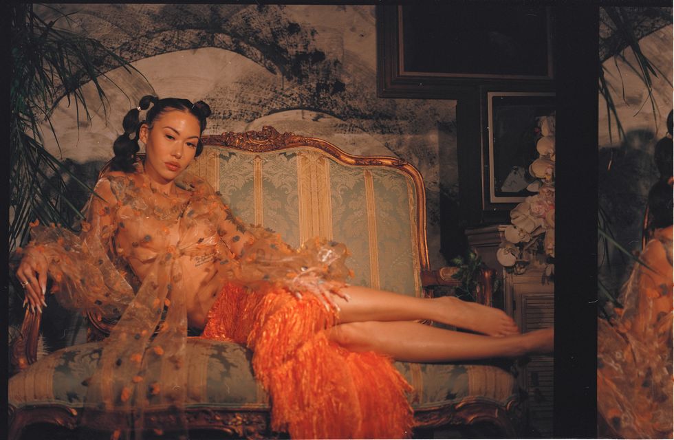 Designer Teni Adeola is obsessed with all things royal. Over the past three years, the 22-year-old Parsons student has combined her love for regality, the Renaissance Era, and her impressive design skills to produce collections featuring stand-out, colorful sheer ensembles laced with delicate ruffles. Although inspired by a very conservative time in European culture, her signature look experiments with edgy contemporary silhouettes and cuts that are now the uniforms for music and fashion's new reigning class –– including SZA, Kali Uchis, Gigi Hadid, Dua Lipa and Lorde.