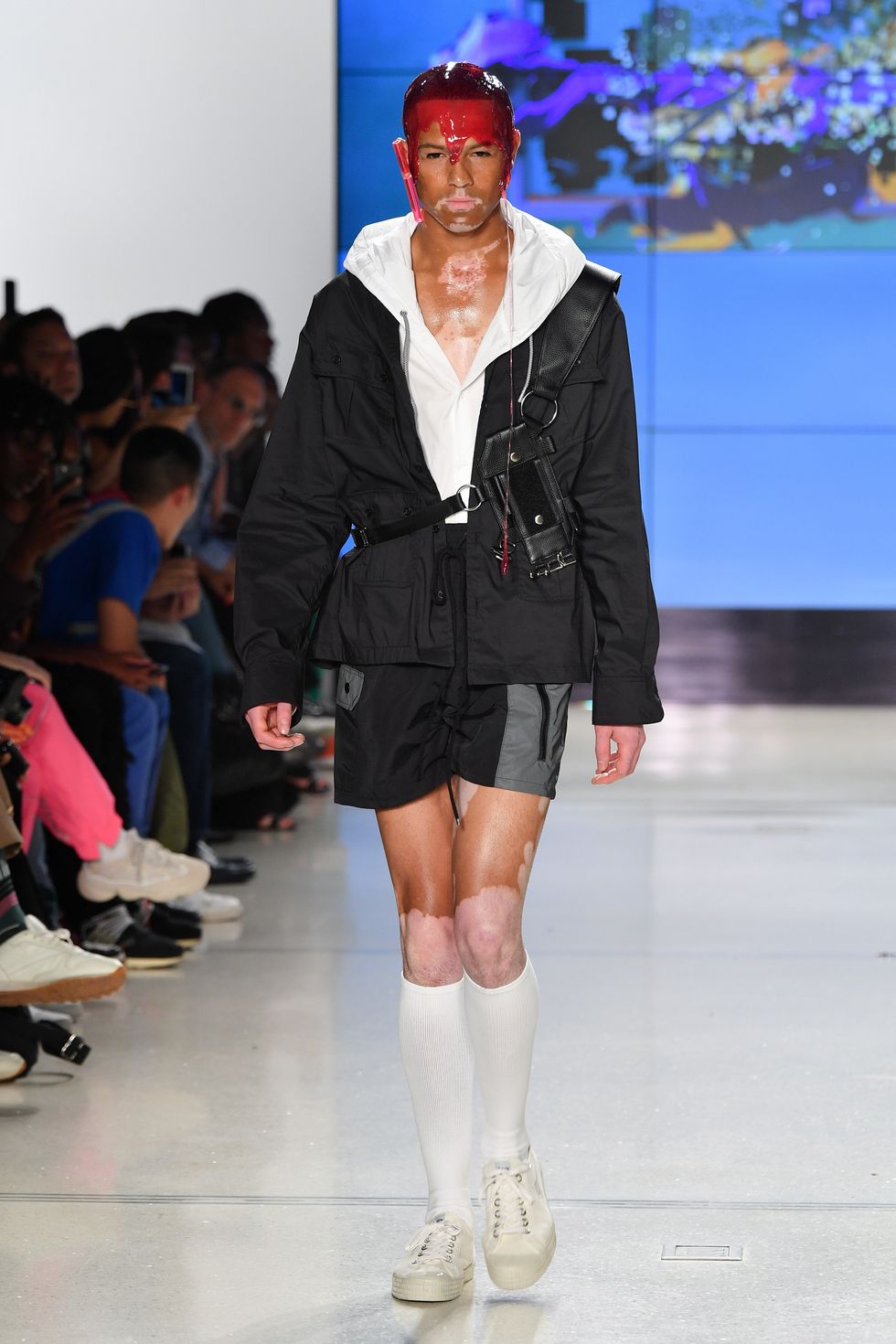 At his spring 2019 show, Landlord creative director Ryohei Kawanishi sent models out with kaleidoscopic slime pouring down their faces. In a true Nickelodeon moment, one shirtless catwalker was covered in the stuff, with white, green, pink, yellow, blue, and red goo slathered all over his arms and torso. The collection, directly inspired by Windows 95, referenced the very '90s hobby of "surfing the net." And if there's one thing the Internet still loves, it's slime.
