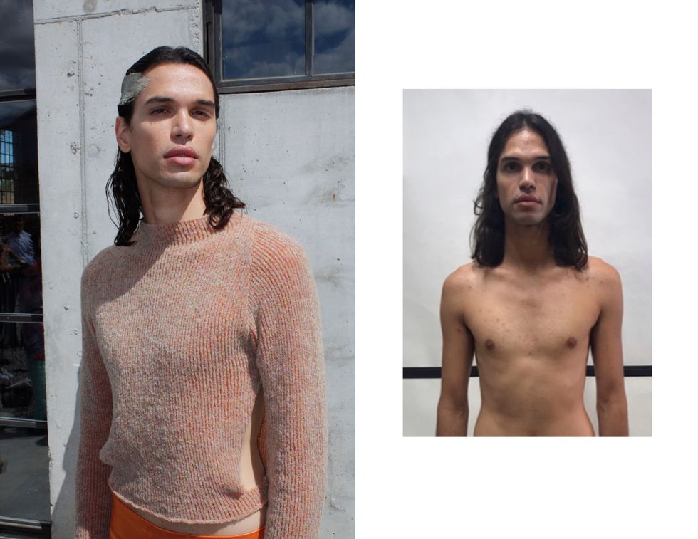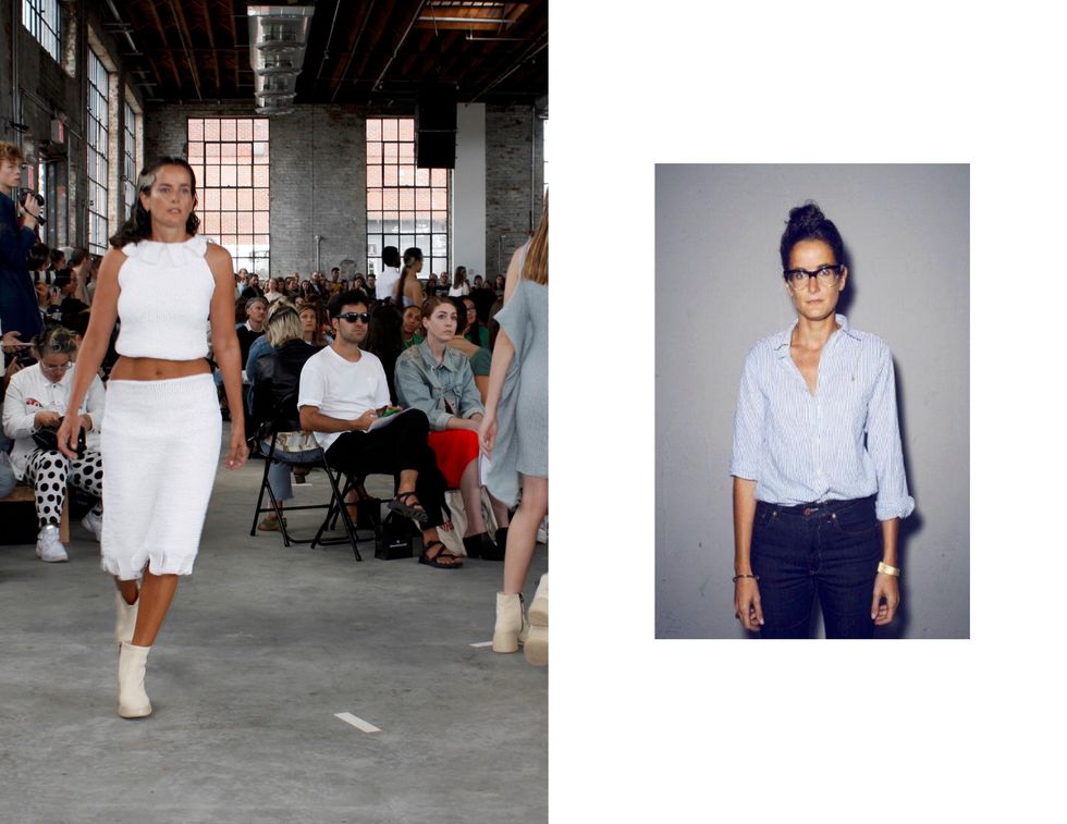 This season the duo enlisted the help of Rachel Chandler of Midland Casting to assemble the eclectic crew chosen to wear their creations. Chandler (maintaining the most luminous of motherly glows having given birth just 4 weeks ago) counts her network of creative friends, Instagram, and the New York City streets among the wells from which she taps to build show castings for clients. In addition to the brand's usual assemblage of family and friends, she curated a fascinating mix of models (both of the moment, and of iconic status) as well as culture mavericks (from curators to crooners) who appeared right at home in Eckhaus Latta's arty assortment of knit separates and directionally tailored wovens.