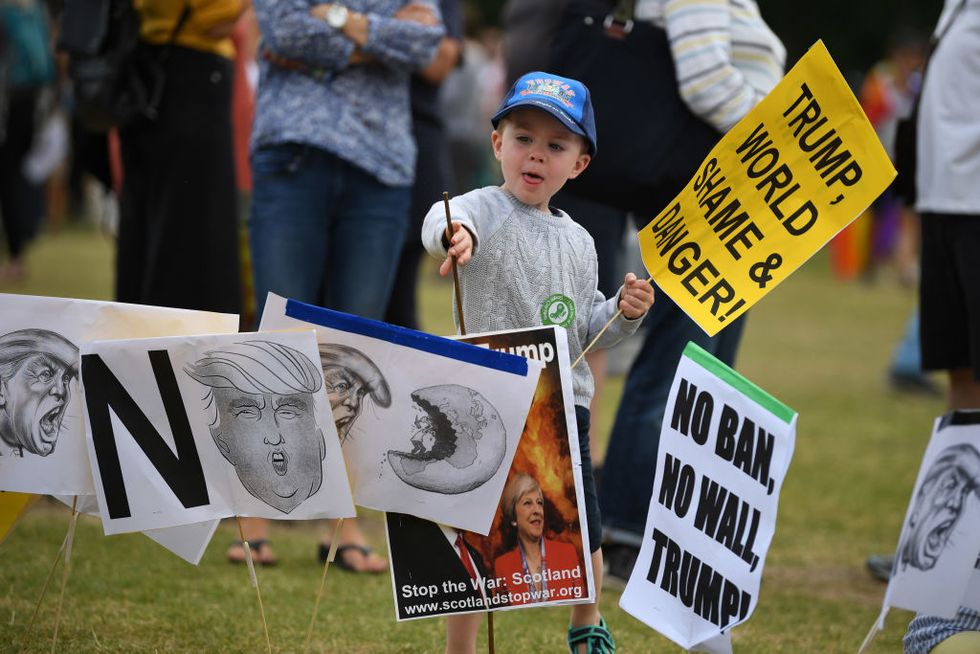 It's been three days since Donald Trump landed in the United Kingdom for his first official visit to the country as president, and the protests have been going every day since. According to The Guardian, a crowd of about 10,000 people—of all ages—gathered in Edinburgh today to protest. And the baby Trump balloon which was first spotted in London has now made its rounds in the Scottish capital as well. The march reportedly started from the Scottish Parliament to the Meadows, and BBC reports that it was rather peaceful and that no arrests had been made.
