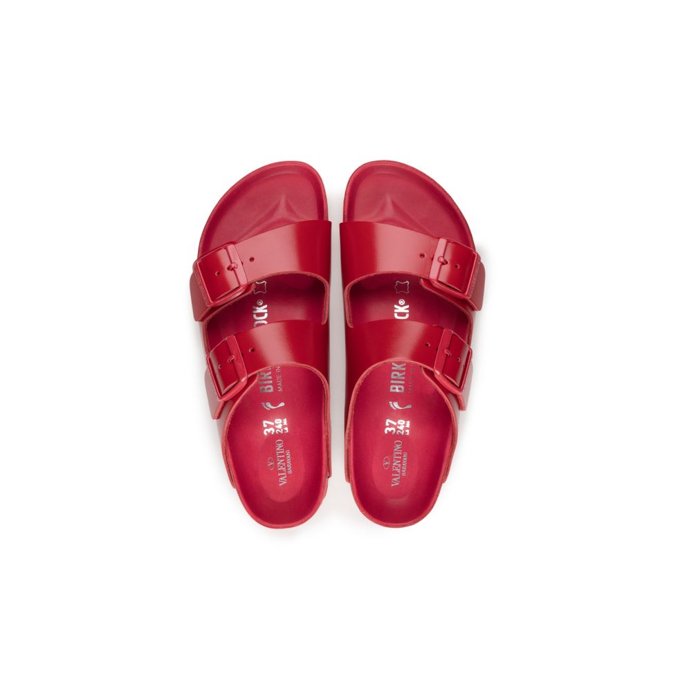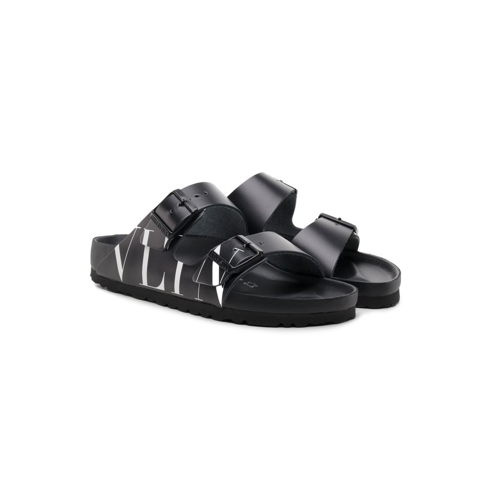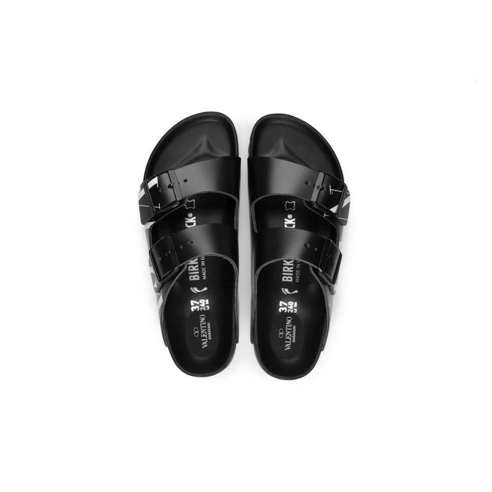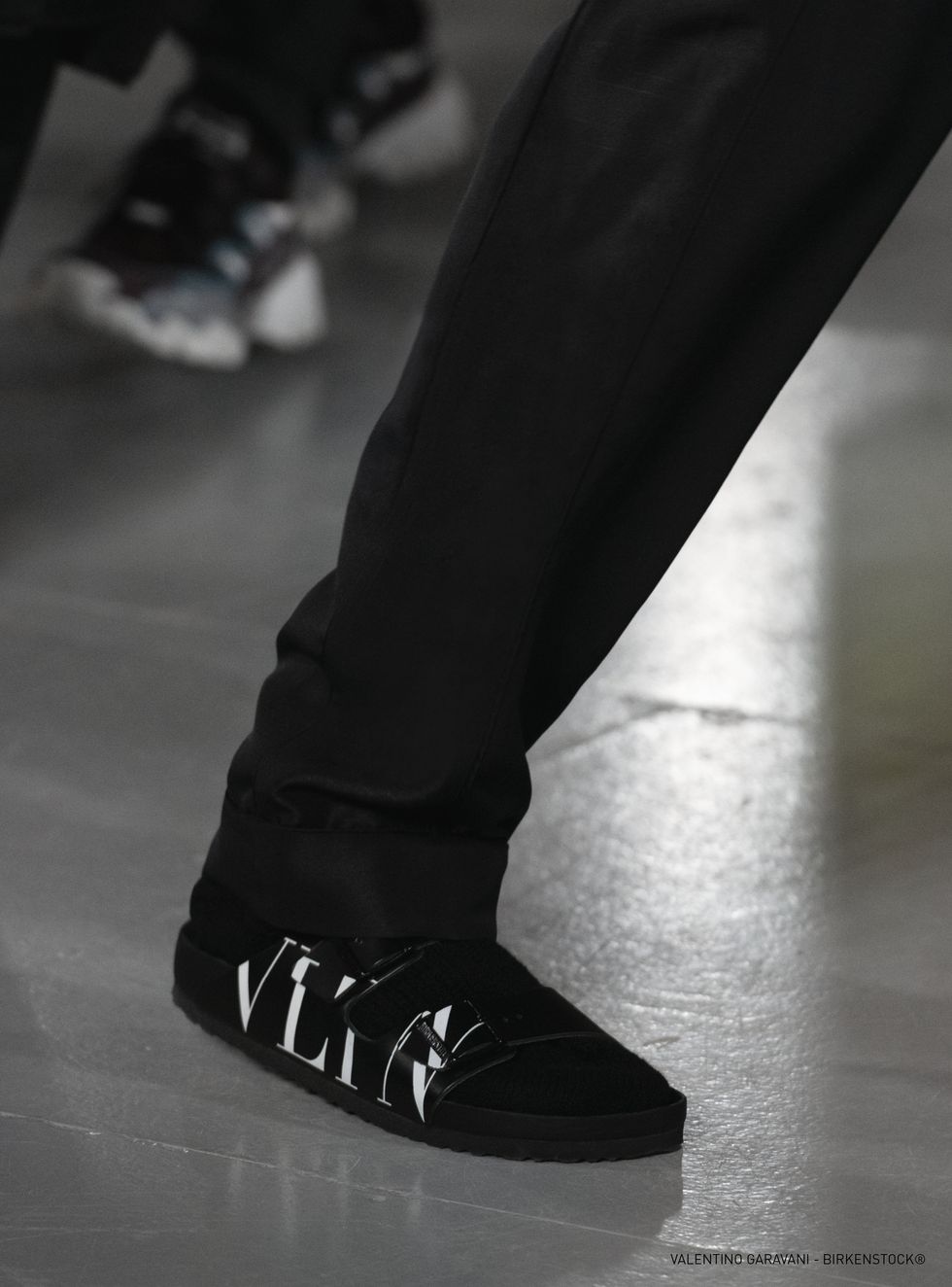 They must have deemed Valentino's "VLTN" logo acceptable, however, because that it's slapped across the side of the black edition of their new collab. Check out the latest step on Birkenstock's high fashion journey: