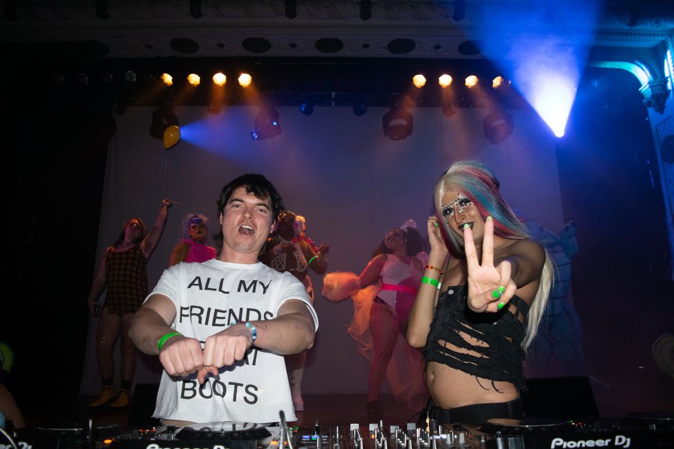 Boots Bitch, out now on all streaming platforms, is a culmination of all the sweaty late nights that Abhi and Kirk have curated for their audience — and it sounds exactly like you think it would. With tracks like “Let’s Get This Party Started” and “Gay Guys Drink Vodka Sodas, But Girls Do Poppers,” the project is like if you took an adderall and teleported onto Rainbow Road in Mario Kart. It’s also a labor of love, an auditory manifestation of Boots that fans can have in their pockets whenever they want to feel the rush of beloved party memories.