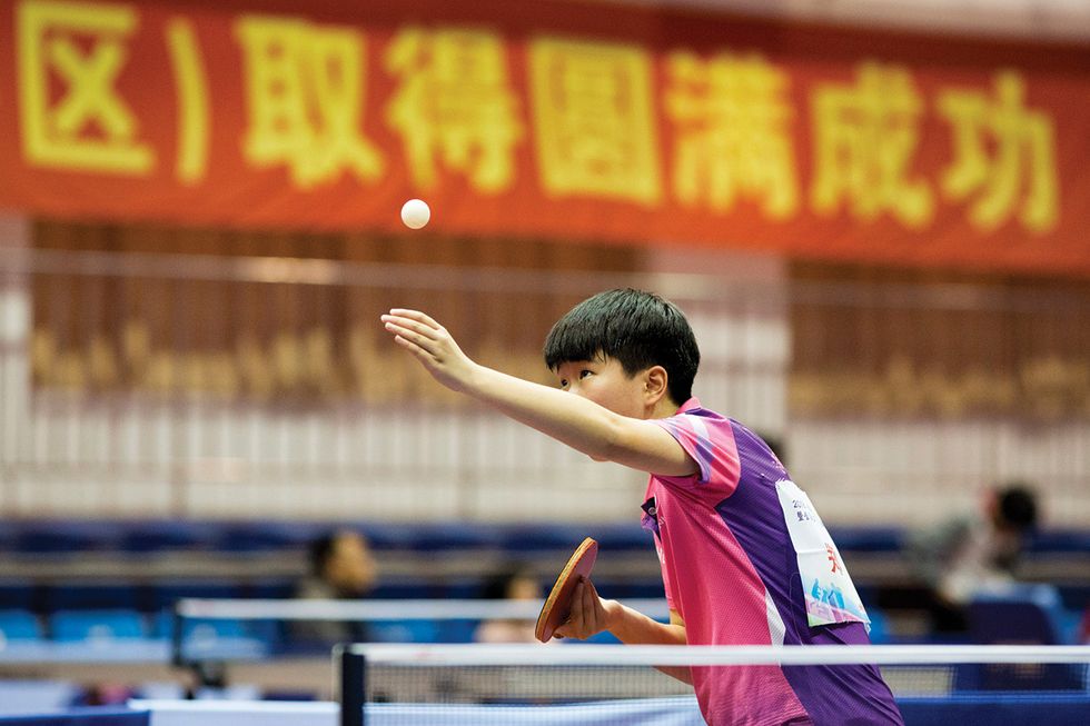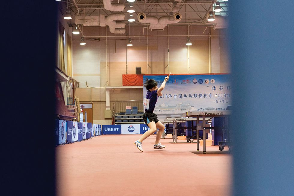 The blinds at the Shanghai Pudong Natatorium sports center in Shanghai are pulled down to block the sunlight, but the temperature inside is still close to 100 degrees Fahrenheit. In the hot and sticky air, dozens of people are competing in a ping pong tournament. Among the competitors are children as young as 10, many of whom practice table tennis for several hours a day as part of their schools' curricula and easily beat older competitors who have practiced ping pong as a hobby for decades. About 80 people, more than three quarters of them men, have put on their high-performance table tennis shirts and shorts to send the little ping pong balls flying toward their opponent, their faces focused and serious.