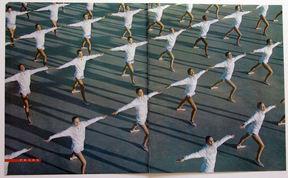 After the boffo success of her nylon accessories and bags coupled with her burgeoning RTW line, Mrs. Prada had the means to expand her brand reach and introduced Prada Sport in 1997. If you think athleisure was a invented in the last decade, think again. The concept that working out or roughing it could be done in luxury apparel was being marketed by Prada long before Lulu Lemon was selling leggings. The campaigns (shot by photographer Phil Poynter) were pretty fabulous too.