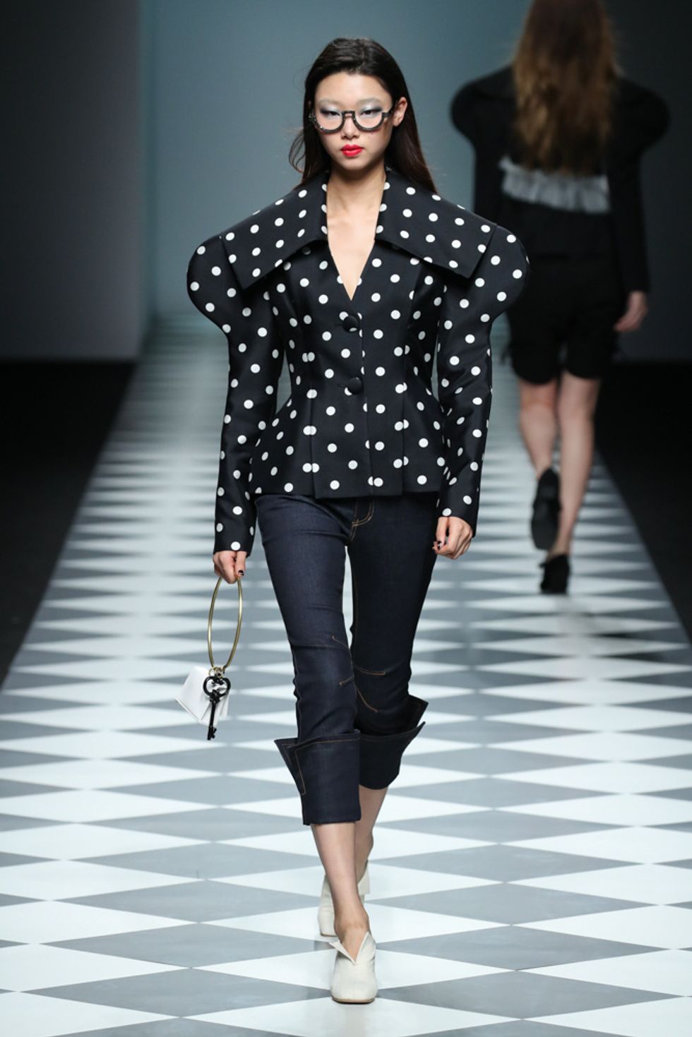 Pretty punchy in polka dots and passport cuff denim.