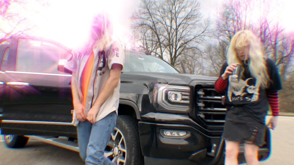 In a similar manner, the music video for "money machine" stars Dylan and Laura as badass rapper-types mugging for the camera as they stomp around a parking lot with some rather large trucks but are heavily masked and distorted by layers of visual effects. The overall effect exists somewhere between a cybernetic hallucination and a deep fried meme. It's hard to pinpoint what is exactly so damn appealing about the video, but perhaps it's for that exact same reason that it's so damn entertaining.