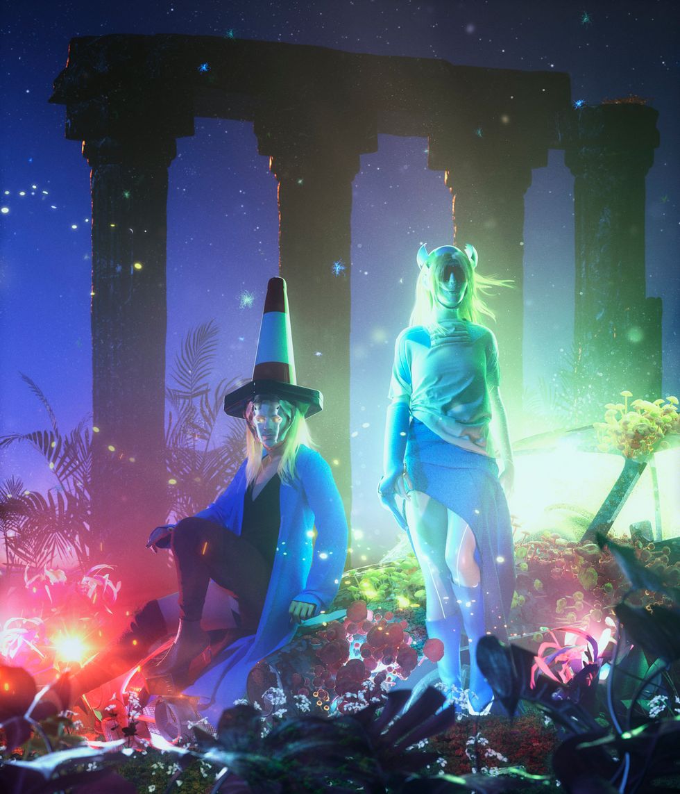 But 100 gecs wasn't made in a vacuum. They sit at the forefront of a new guard of producers who grew up hearing Crazy Frog and Eiffel 65's "Blue (Da Ba Dee)" on the radio; they came of age as blog house giants like Justice and Mr. Oizo gave way to EDM megastars like Avicii and Diplo; they were inspired by how A. G. Cook and SOPHIE pushed high gloss pop to new experimental extremes. Les herself is only the latest in a long line of trans and nonbinary artists like Arca and the aforementioned SOPHIE to use modulation and vocal effects to play with gender in their work. Now, it's this generation's turn to step up and shape the musical landscape.