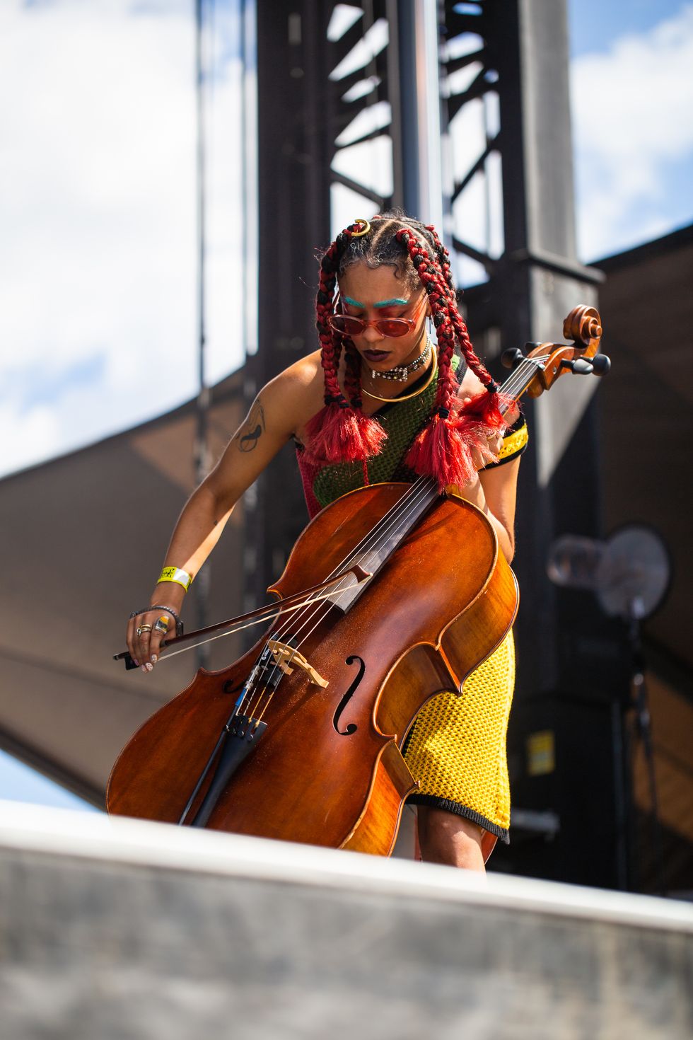 If you've watched HBO's Euphoria, then you've heard cellist and singer-songwriter Kelsey Lu's gorgeous cover of 10cc's "I'm Not In Love." Kelsey is a 28-year-old Los Angeles artist that dropped her debut album Blood this year. Her music transcends the chaos both of a festival, and the world. At her Saturday performance, with her renditions of hits like "Due West" and "Shades of Blue" she had all of us channeling her Taurus energy and reaching for calm and serenity. — Ninoshkka Paul