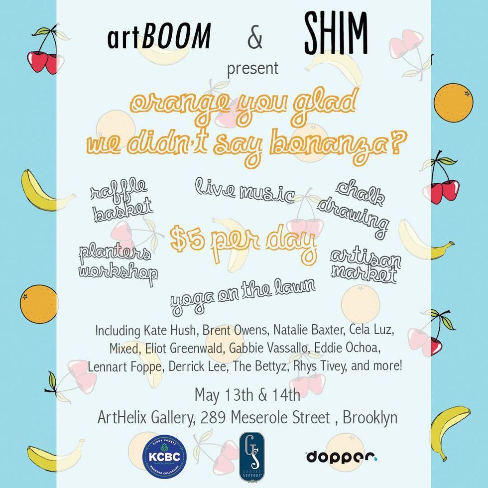 artBOOM and SHIM present a group show (and more) this weekend, May 13 and 14, at ArtHelix Gallery (289 Meserole Street, Brooklyn). Look for works by Kate Hush, Brent Owens, Natalie Baxter, Cela Luz etc. — plus there's live music, chalk drawing, yoga, food and an artisan fair, all for only $5.