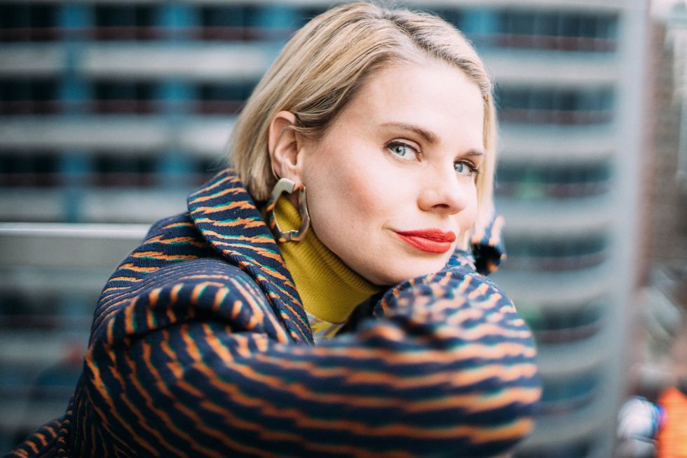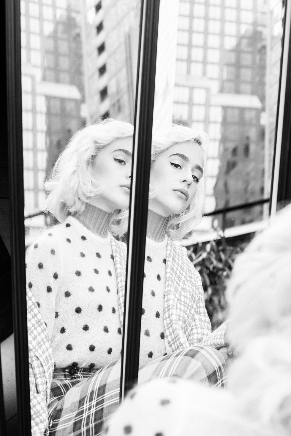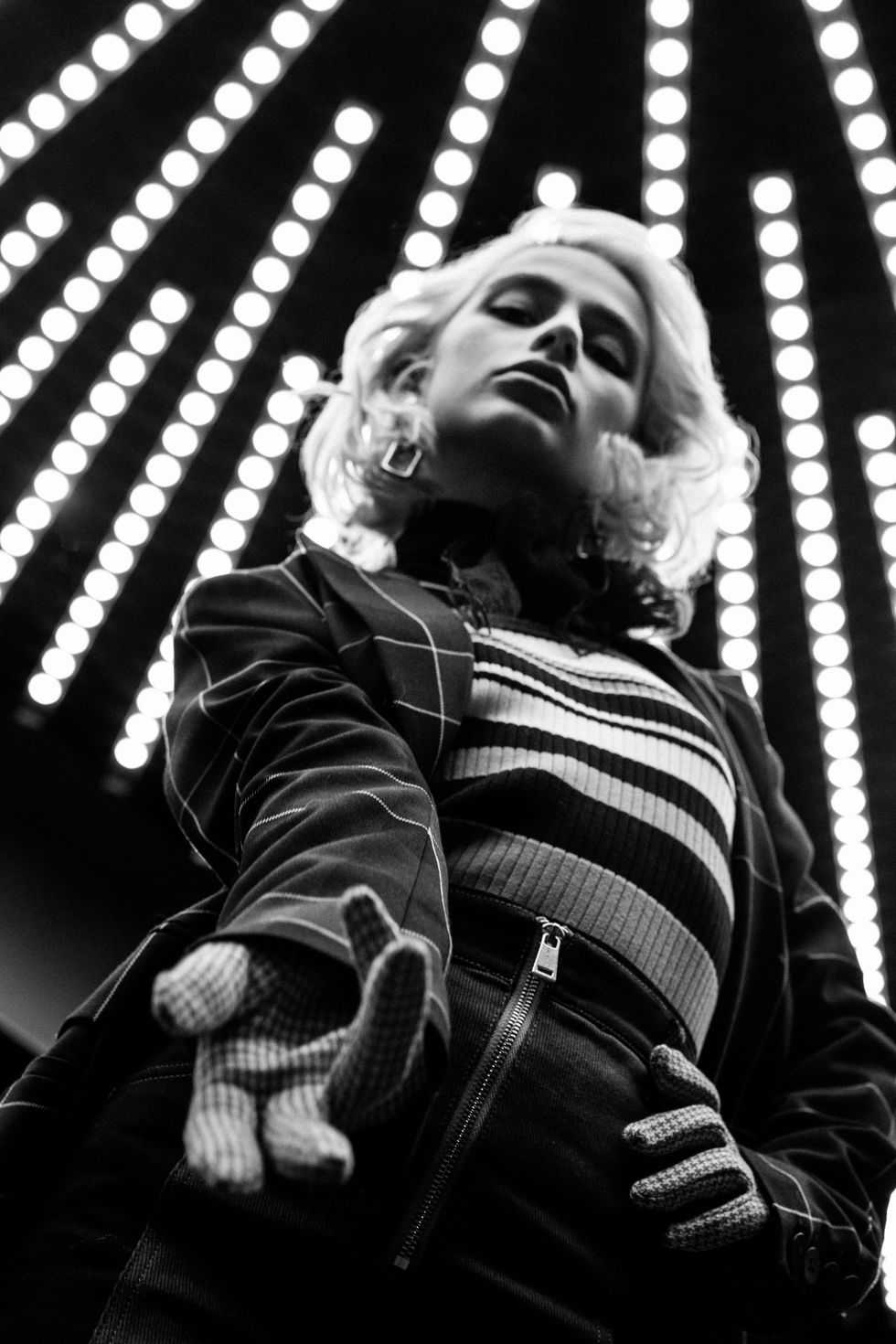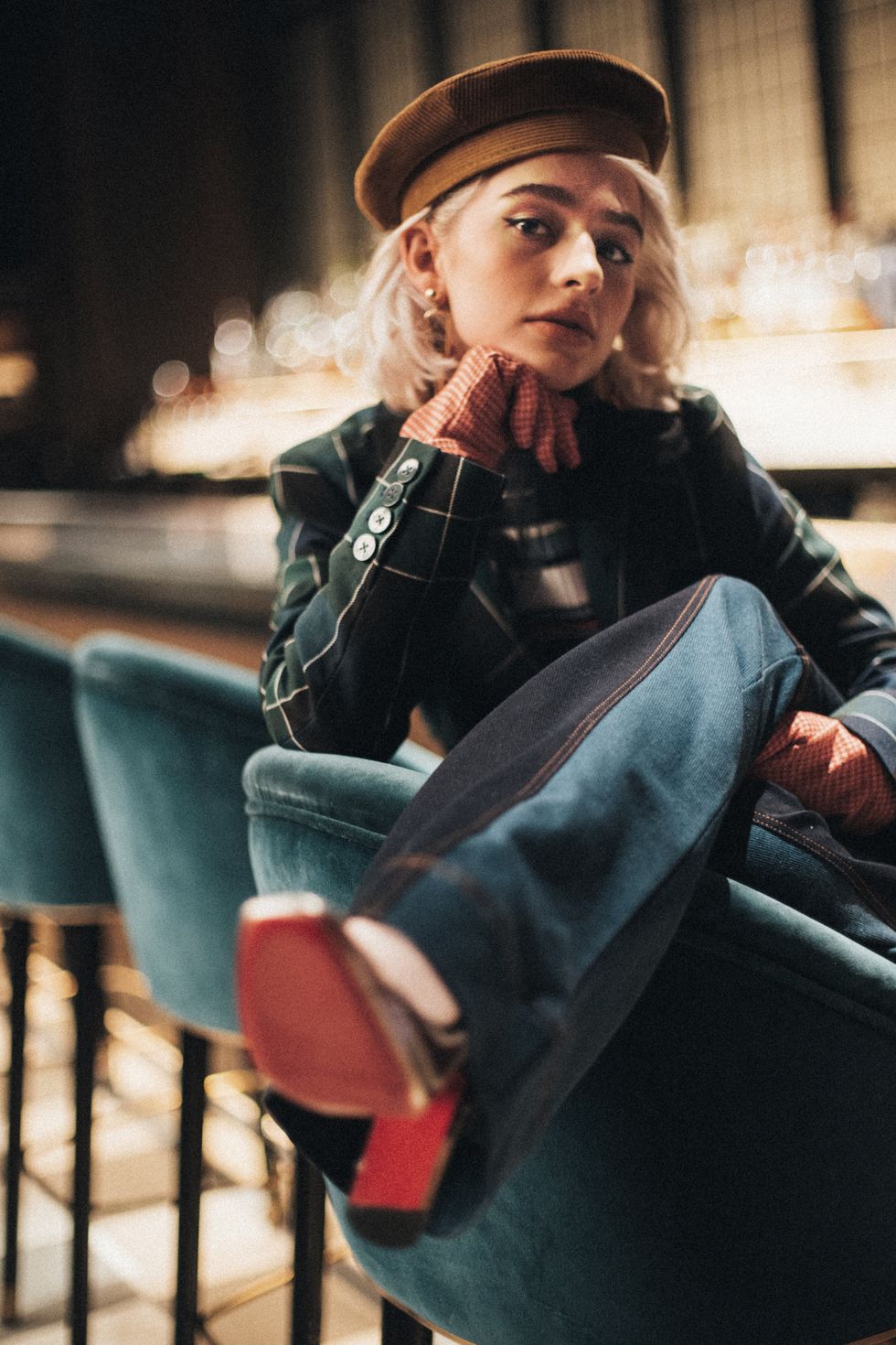 Earring: Laura Lombardi, Gloves: Wing & Weft, Blazer & Turtleneck: & Other Stories, Sweater: Baum Und Pferdgarten, Pants: Whistles