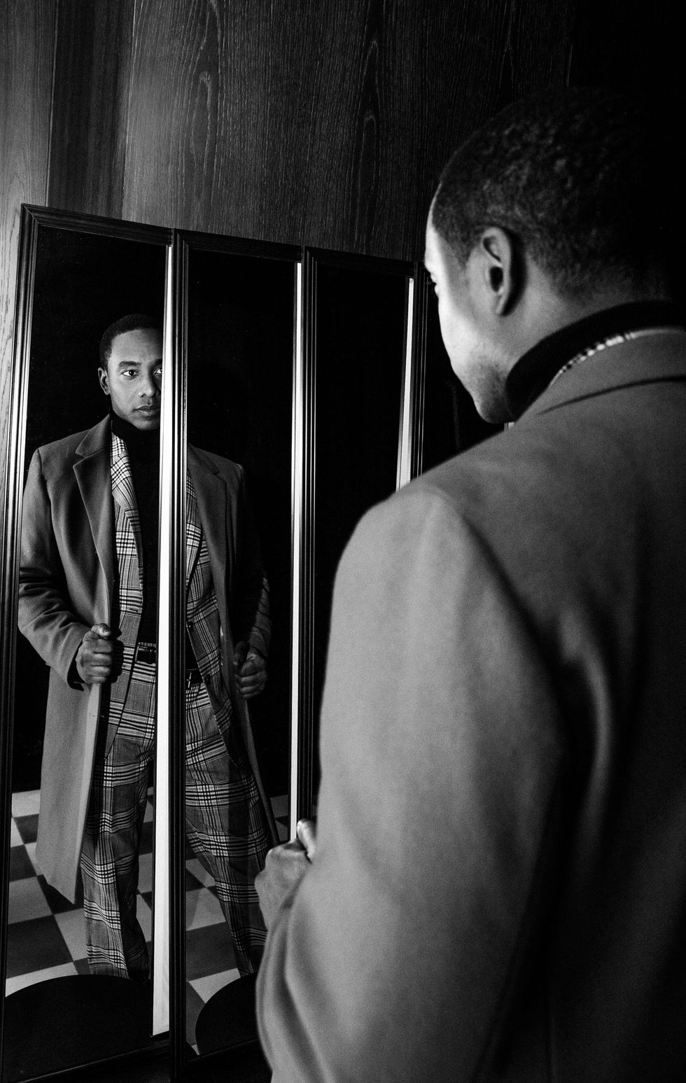 Coat & Suit: Sandro, Turtleneck: Topshop, Belt: Cole Haan, Shoes: To Boot New York