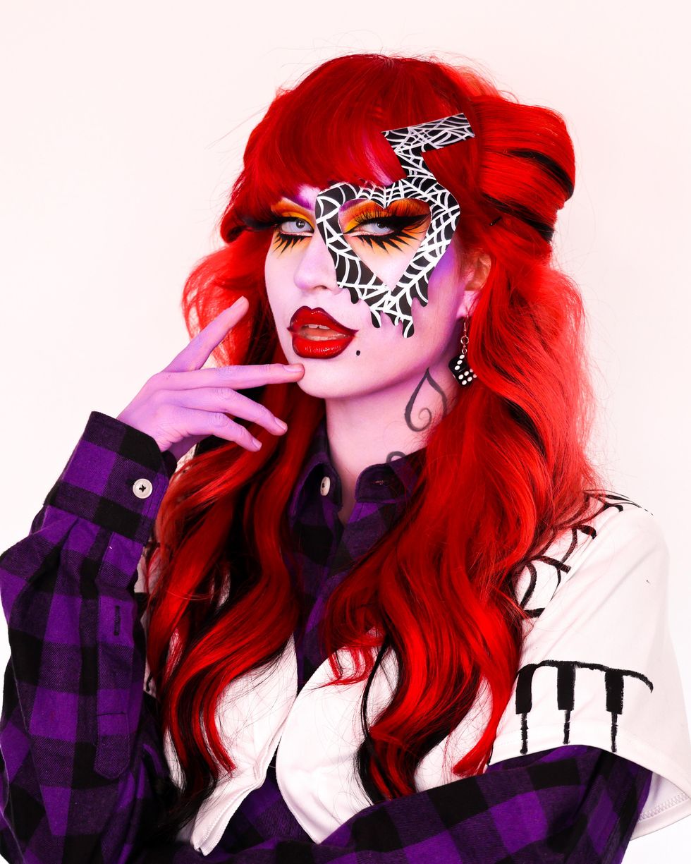 The inspiration for each of my looks comes from all over the place, but I mainly pull a lot of creative inspiration from my favorite music, vivid bright colors, and my own experiences and emotions. I've lived with the autoimmune disease Alopecia Totalis since high school, an autoimmune disease that causes all of my hair to fall out.