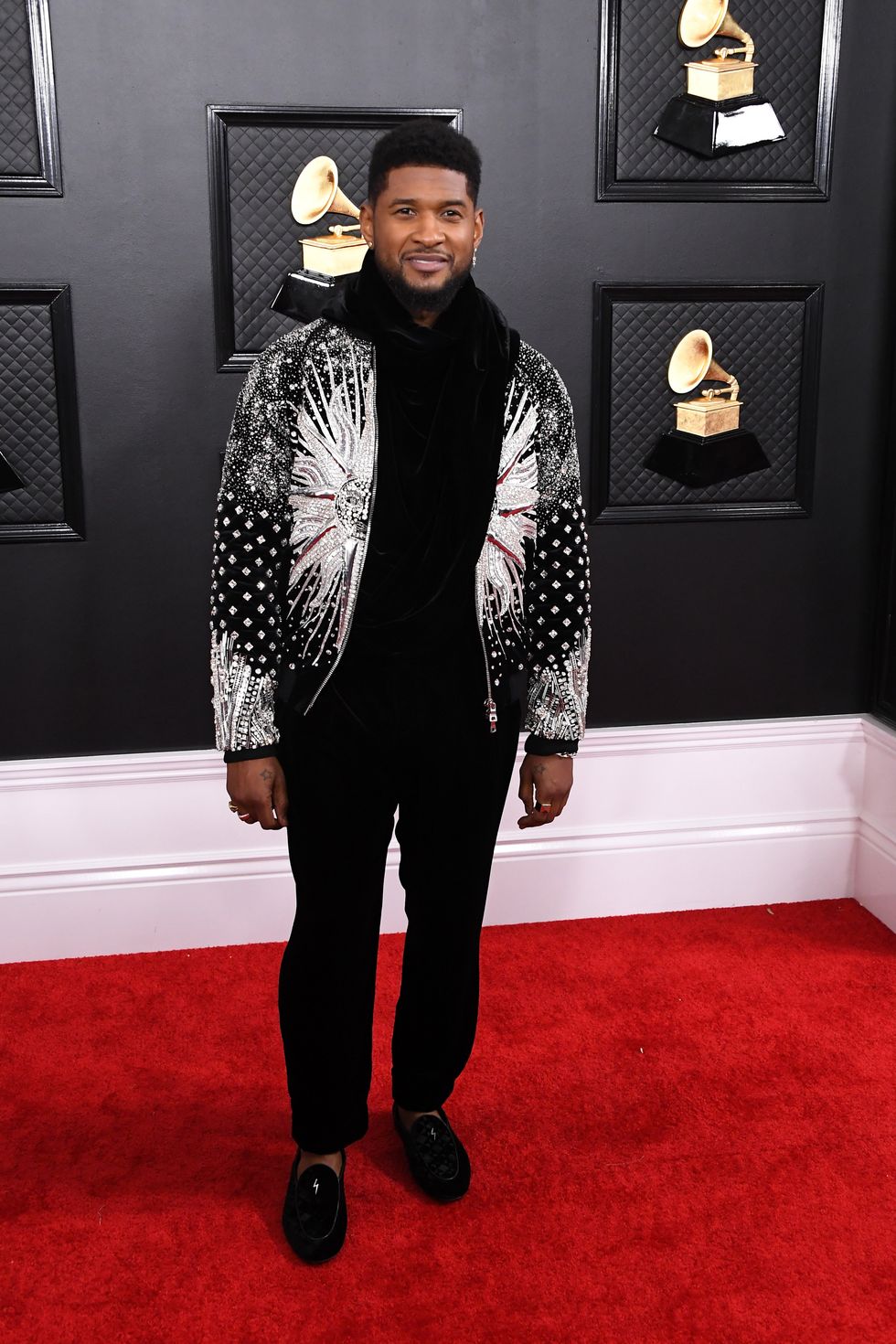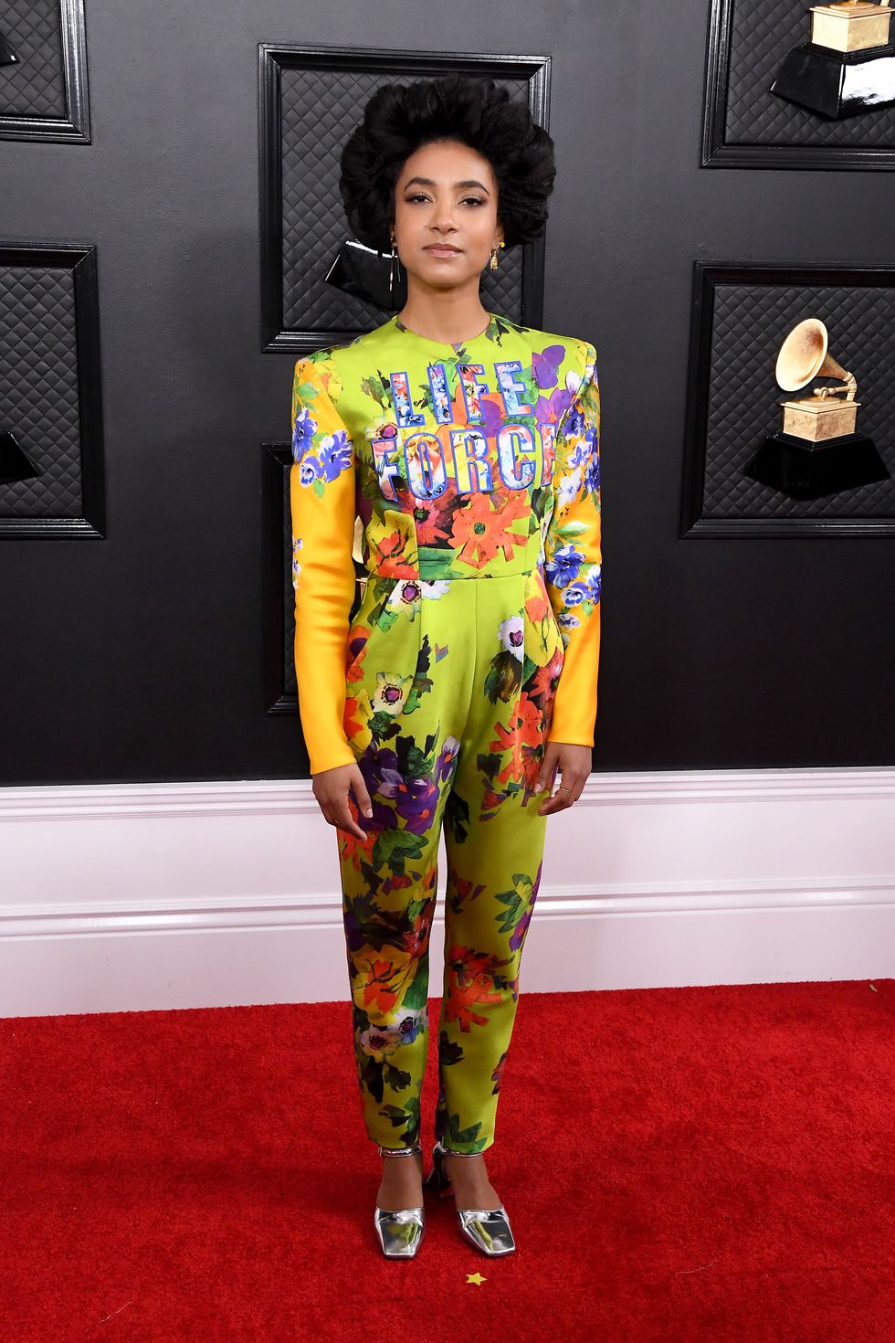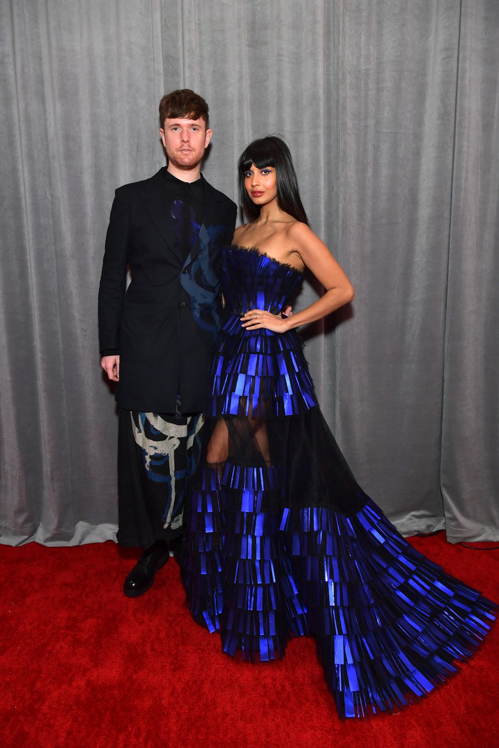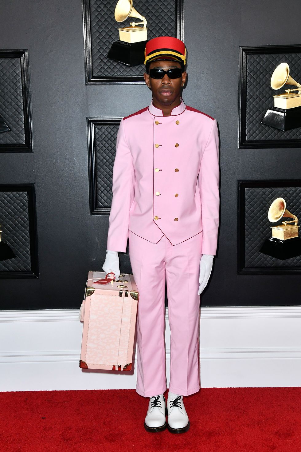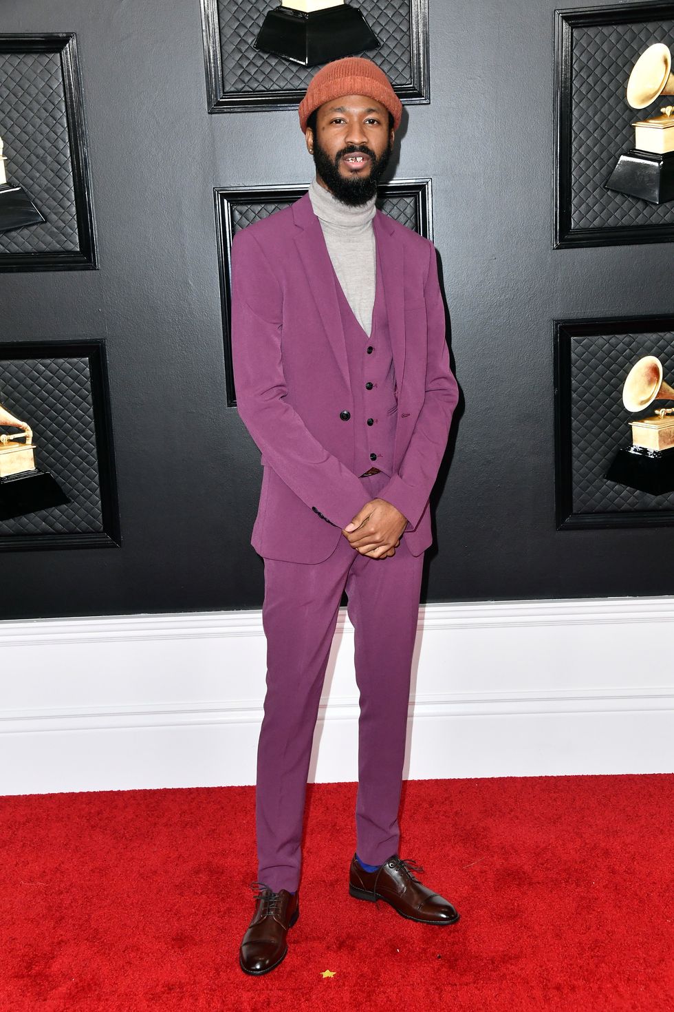 Lil Nas X was hard to miss with his neon pink cowboy outfit. Ariana Grande — who makes her return to the Grammys stage — also showed up in a grand, cloud-like vision of a Giambattista Valli creation. And Billy Porter did not disappoint with his shimmering blue, custom Baja East crystal-drenched flare jumpsuit and jacket.
