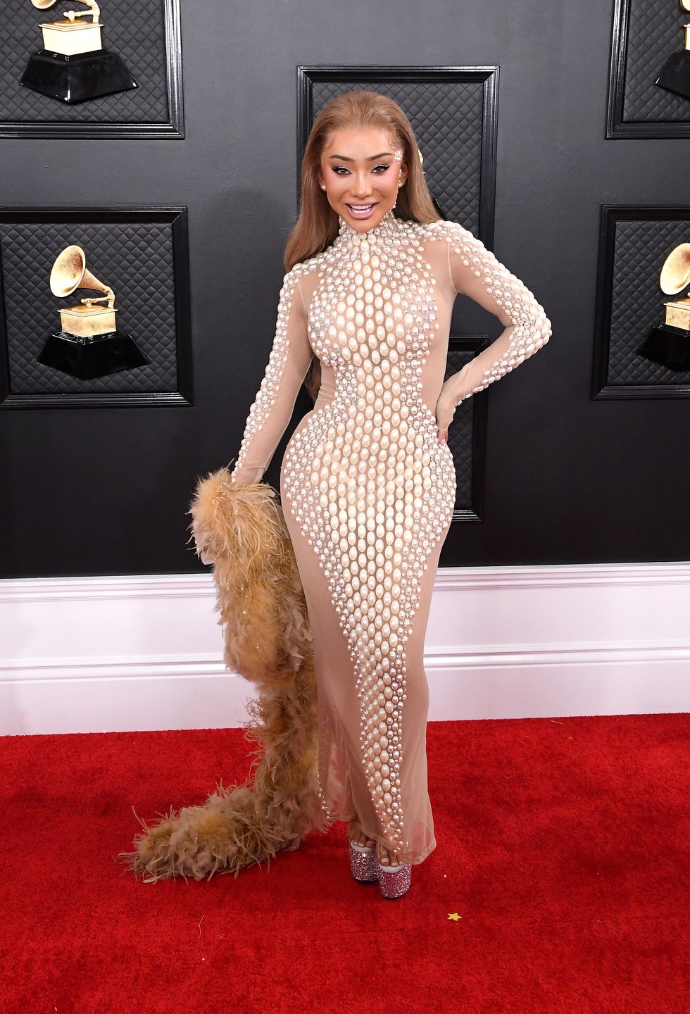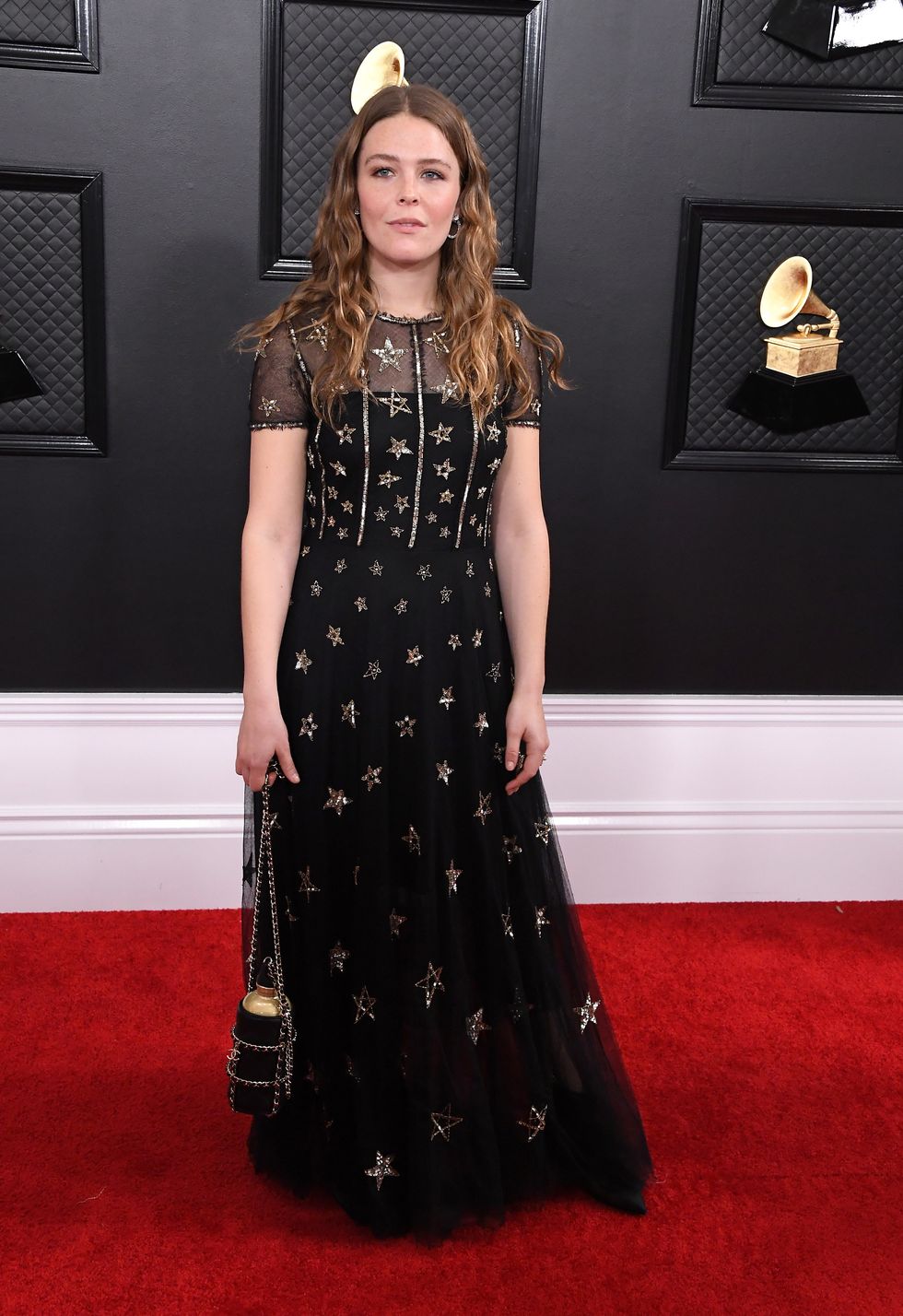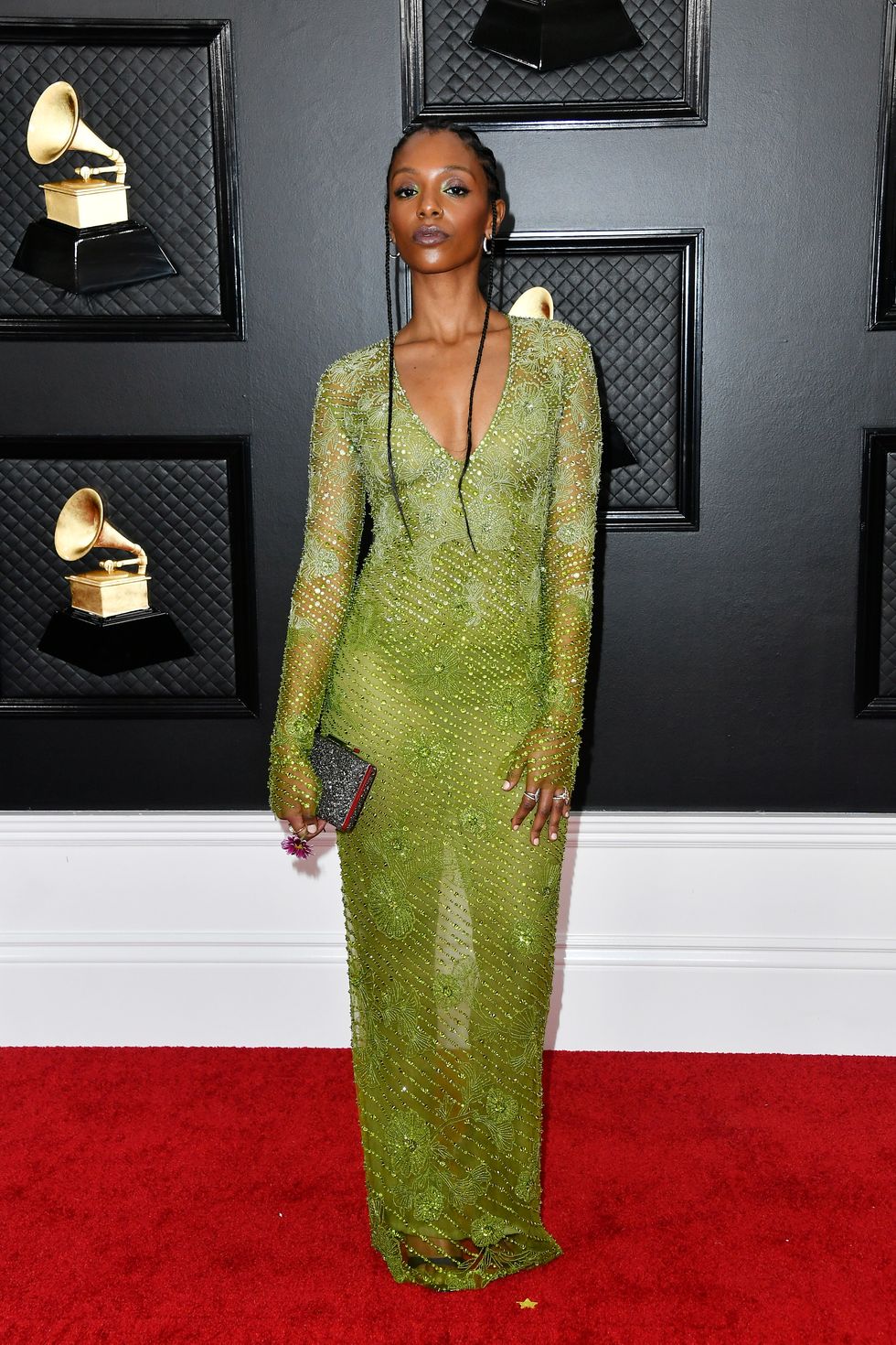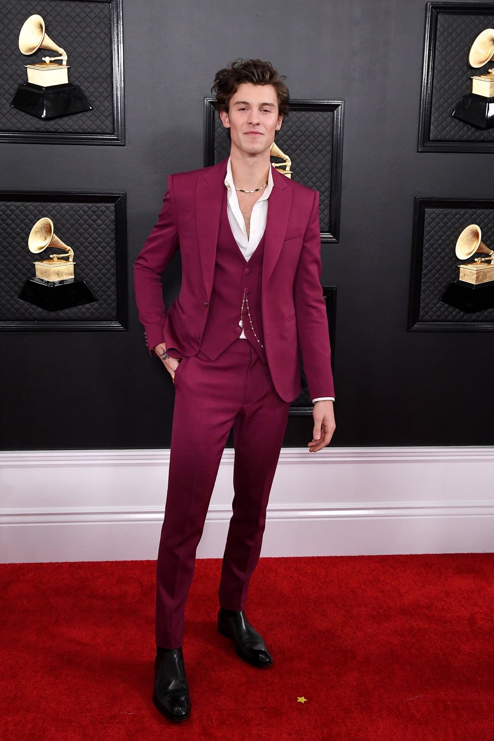Lil Nas X was hard to miss with his neon pink cowboy outfit. Ariana Grande — who makes her return to the Grammys stage — also showed up in a grand, cloud-like vision of a Giambattista Valli creation. And Billy Porter did not disappoint with his shimmering blue, custom Baja East crystal-drenched flare jumpsuit and jacket.