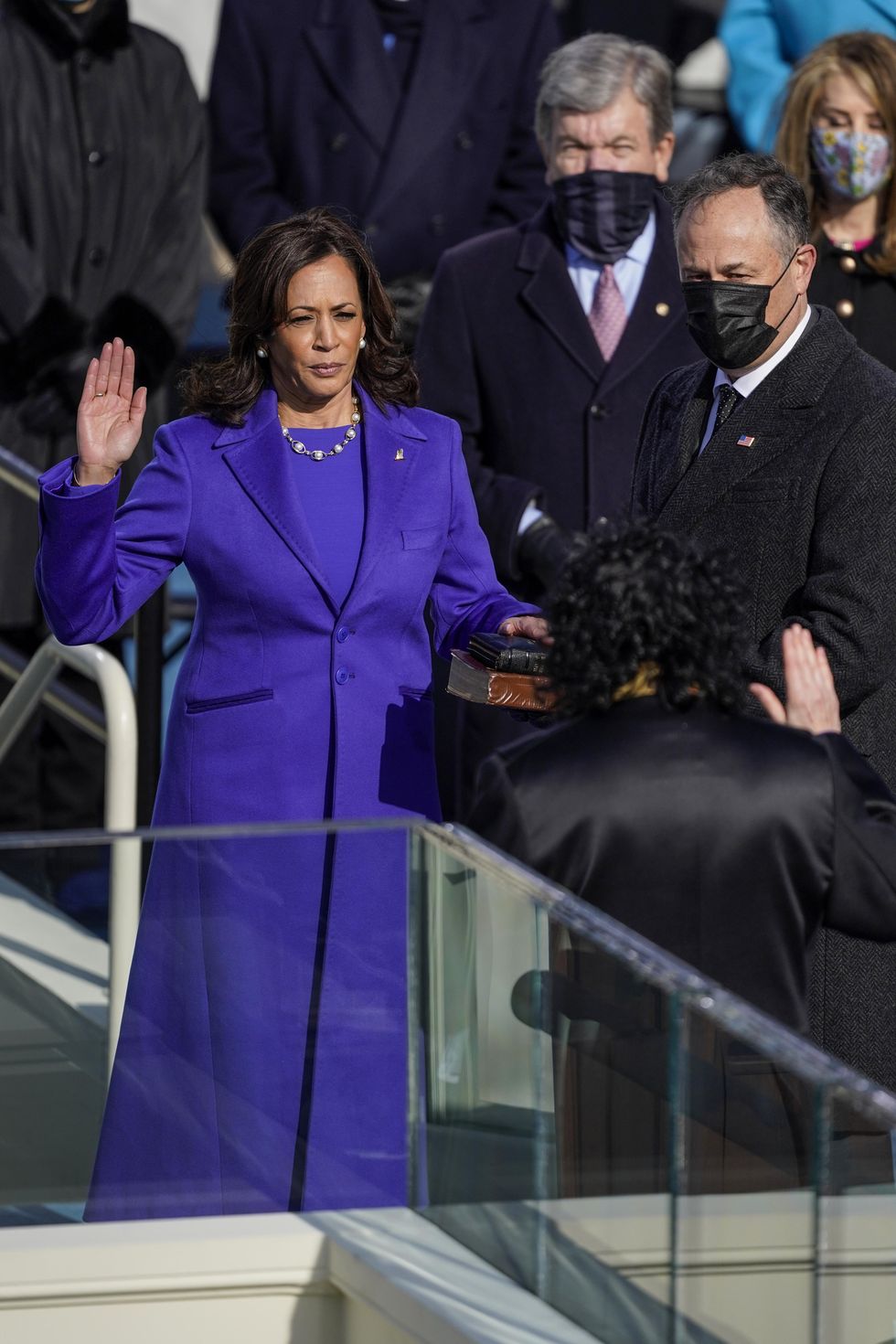 For her historic swearing in as Vice President, Kamala Harris opted for a custom purple tailored coat and dress by CFDA 2021 American Womenswear Designer of the Year winner Christopher John Rogers. In successfully struck the balance of bold without overwhelming, while signaling Harris was here to serve more than just the American people (I’ll see myself out).