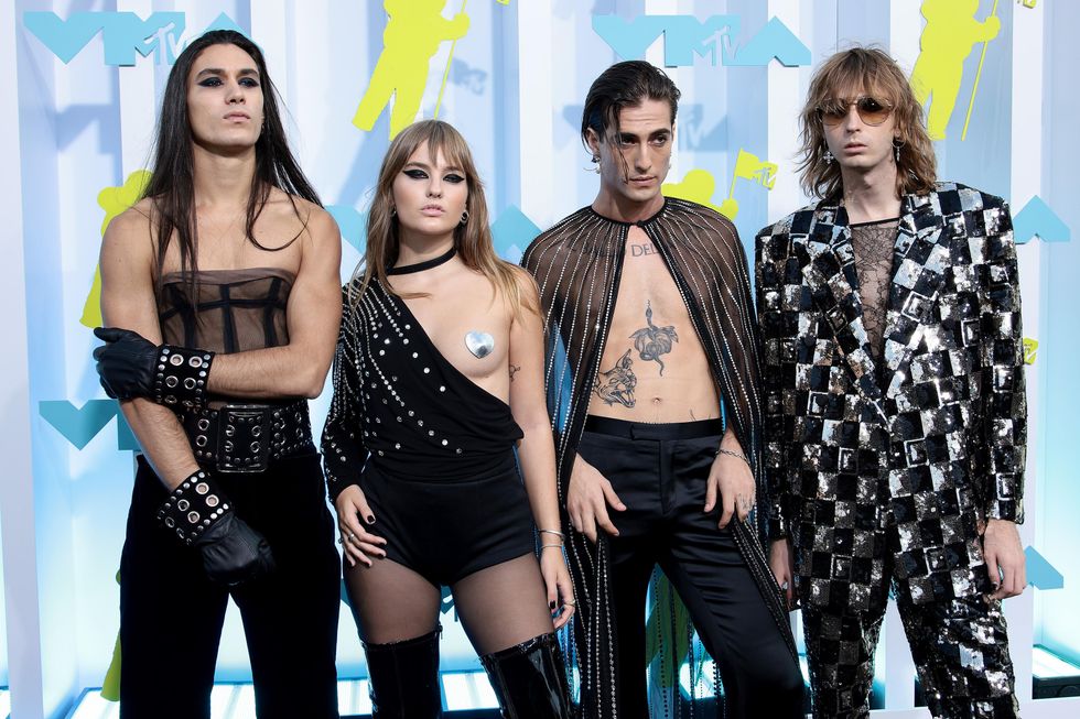 Måneskin brought their signature edgy sex appeal to the VMAs Sunday night, wearing head-to-toe custom Gucci by Alessandro Michele. The looks bared all, including a sheer corset, nipple covers and a floor-length jeweled cape.