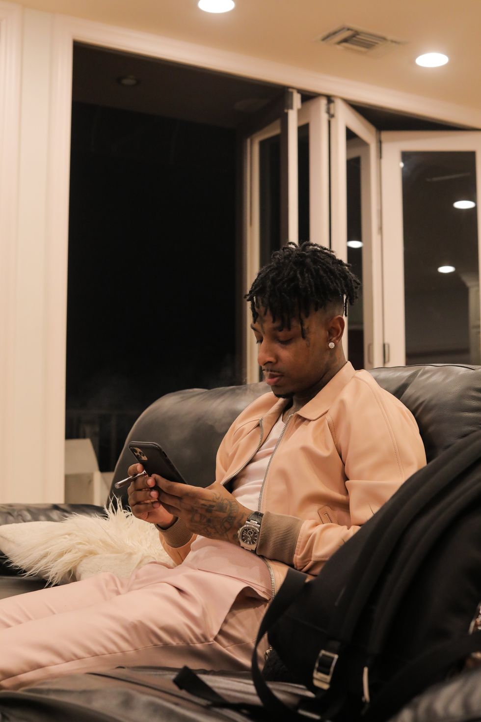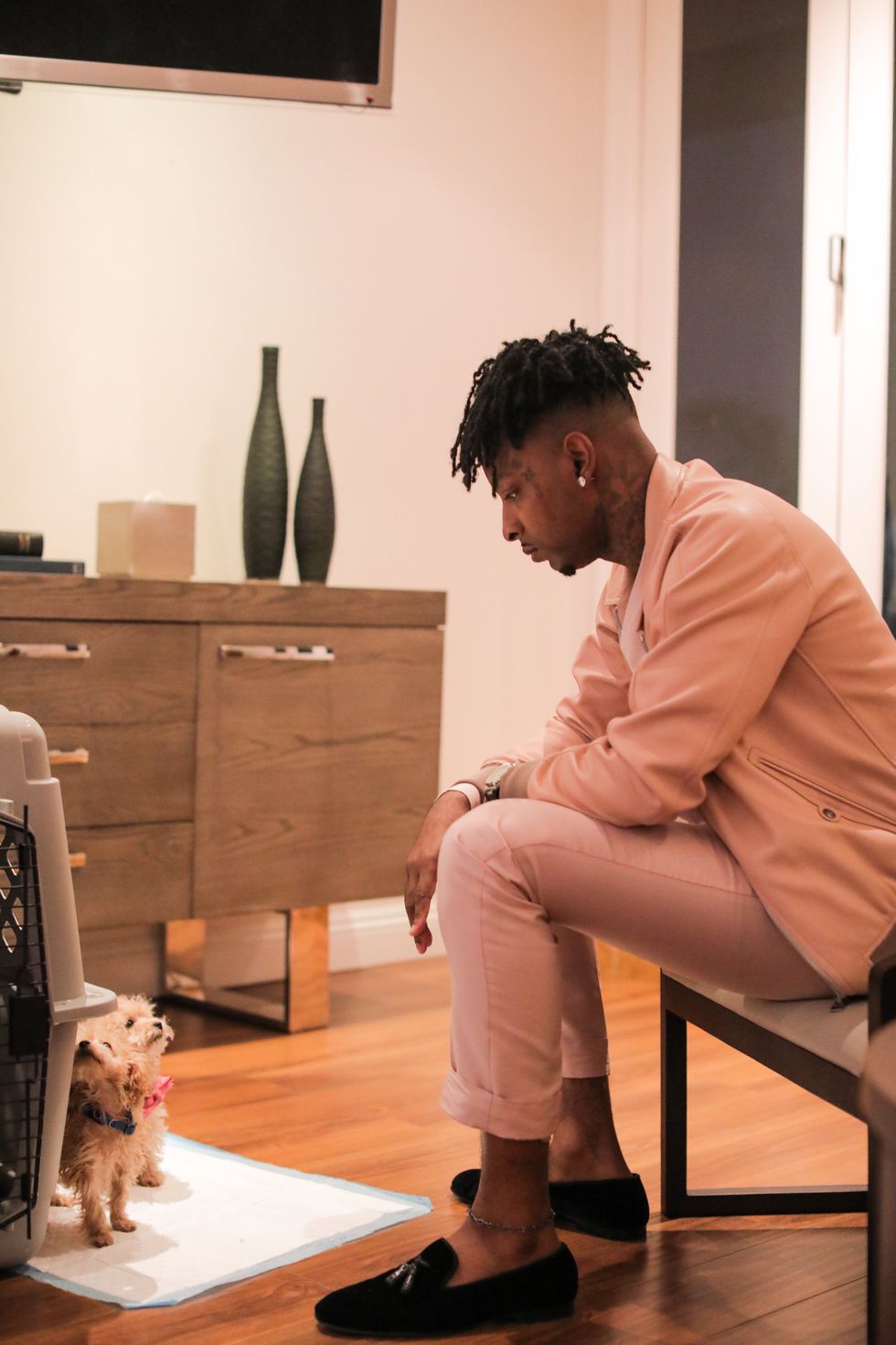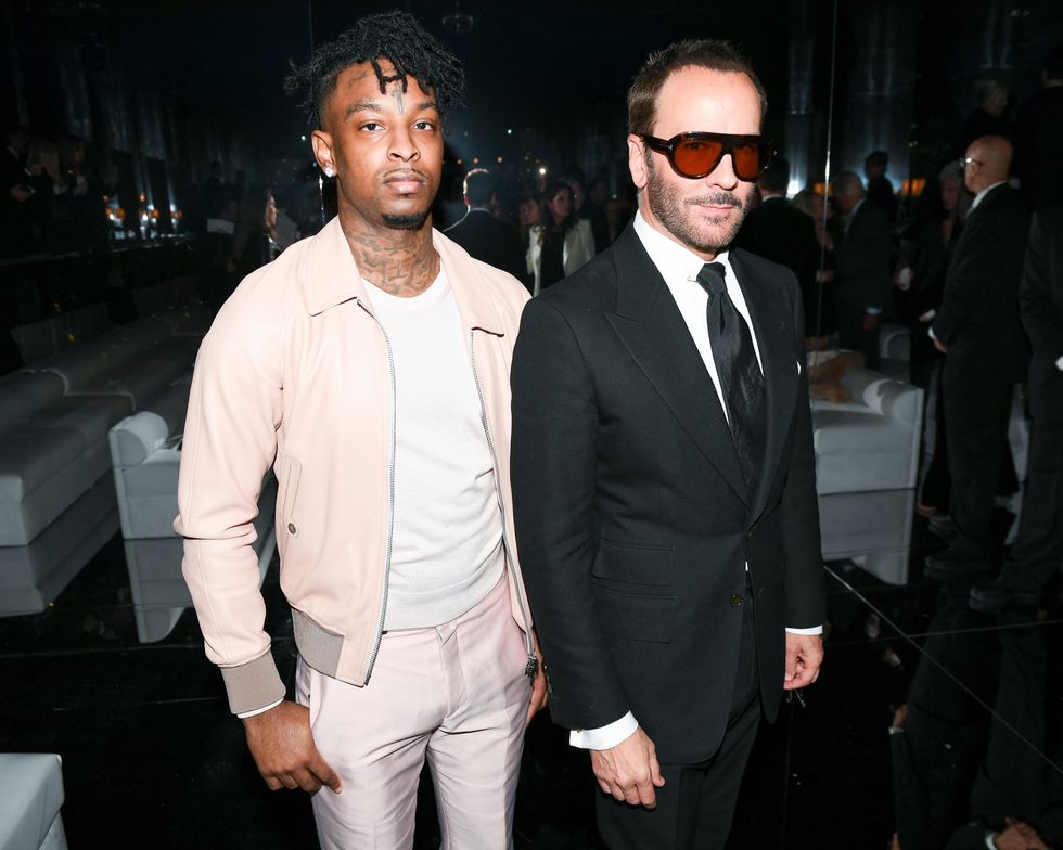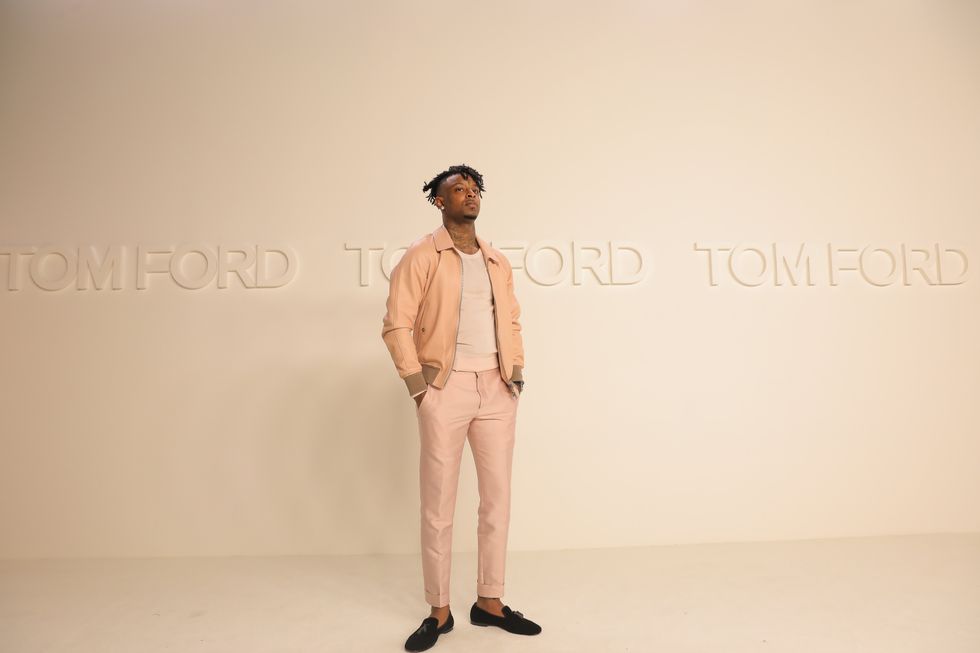 There was no shortage of star power at Tom Ford's runway show in LA last week. From the Hollywood actors in town for the Oscars to global superstar performers, everyone who's anyone came together for the fashion event of the season. One of them was 21 Savage, who looked dapper in a pale pink bomber jacket and matching pants as he took in the clothes from the front row and caught up with Ford himself. Click below for more photos of Savage behind the scenes getting ready as well as his presence on the runway and finally back at home.