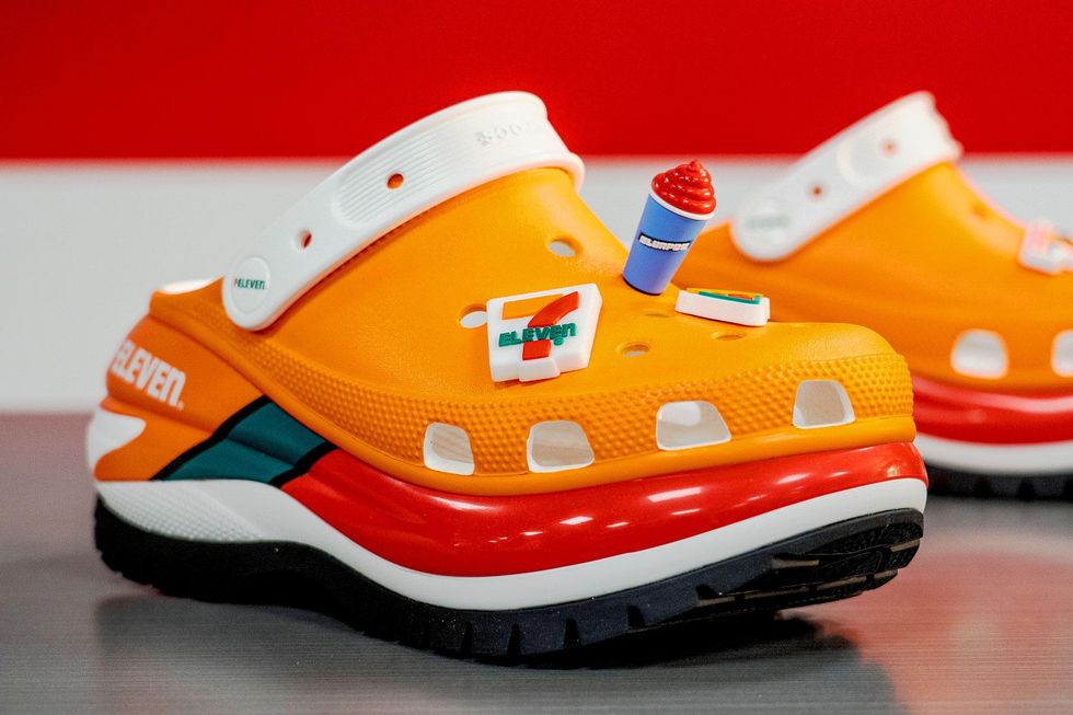 Joining forces with the world's largest convenience store franchise 7-Eleven, Crocs is back with their latest collaboration that draws inspiration from the chain's most iconic snacks, from their Big Bite Hot Dog to their coffee, pizza and Slurpee. Immortalizing all these snacks and the store's logo as Jibbitz, the collab brings the 7-Eleven colors and iconography to three pairs of Crocs: their classic clog, sandal silhouette and new Mega Crush Clog.